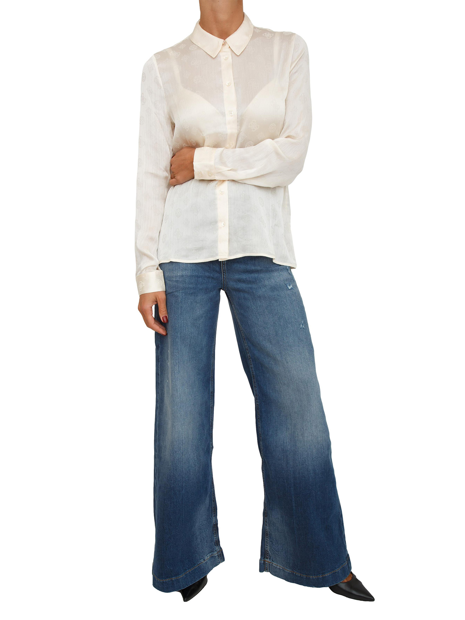 Camicia Guess Jeans donna in tessuto avorio logo jacquard all over
