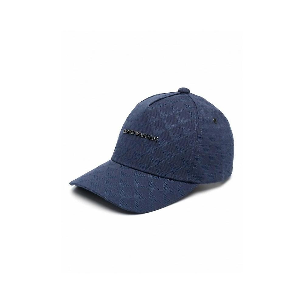 Cappello da baseball Emporio Armani in tessuto blu jacquard logo