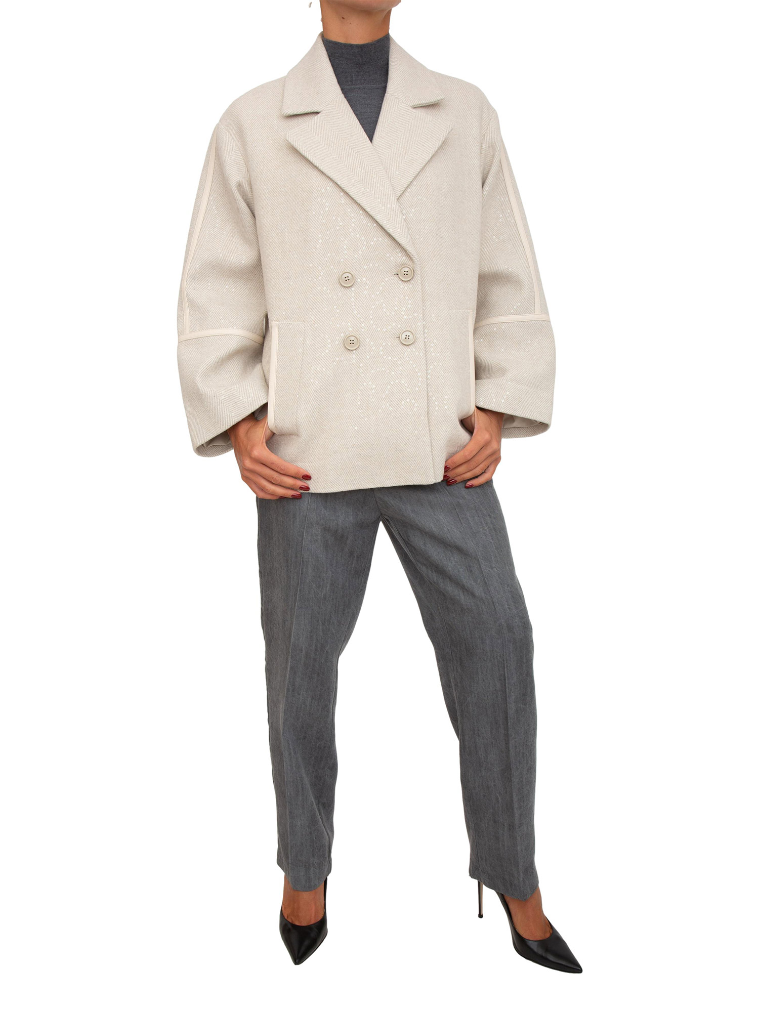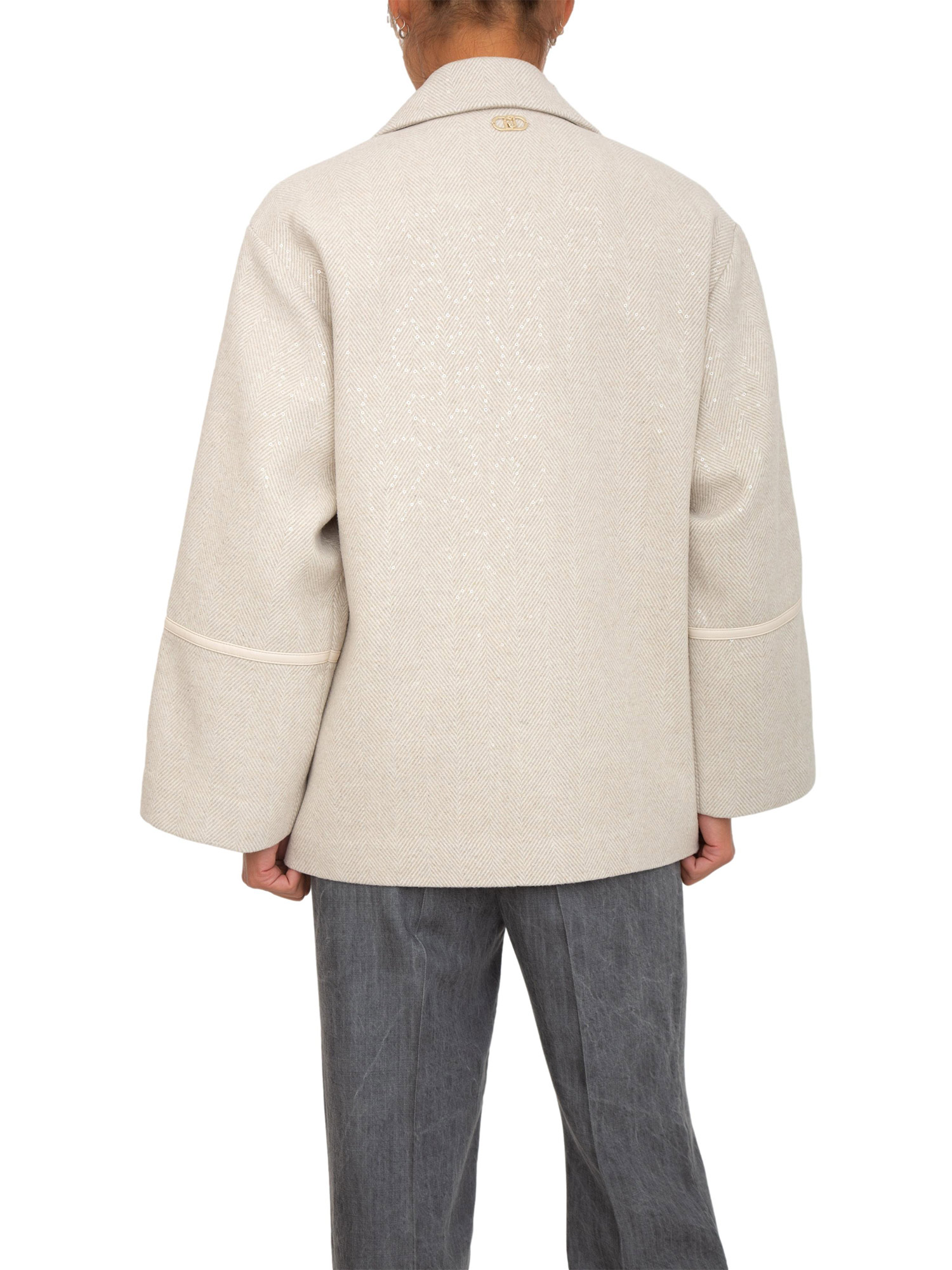 Cappotto caban Liu Jo in misto lana avorio con paillettes
