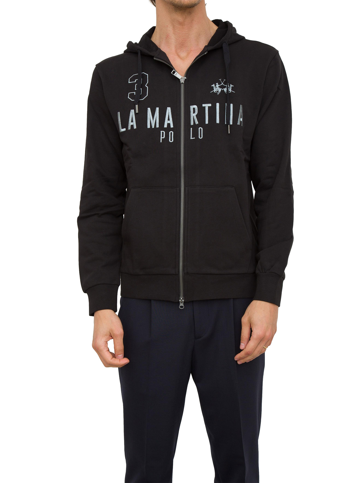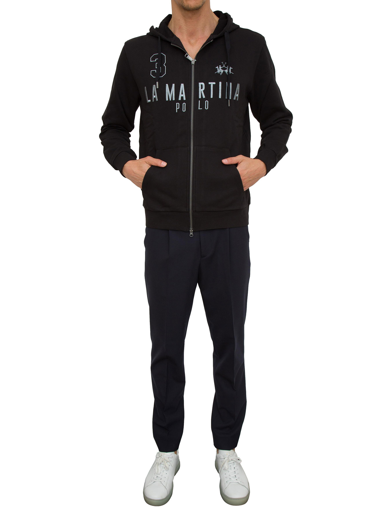 Brand: LA MARTINAFelpa da uomo a maniche lunghe con cappuccio in tinta unita, realizzata in 100% cotone. Cappuccio dotato di coulisse. Doppia tasca anteriore. Orlo in vita e polsini a coste. Il logo, la scritta La Martina e il numero tre sono ricamati a contrasto nella parte frontale. La vestibilità è regolare.