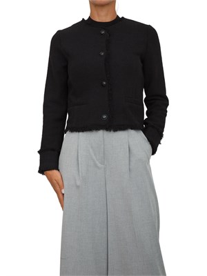 Brand: EMME MARELLAGiacca corta Emme Marella realizzata in stuoia armaturata di misto cotone stretch, caratterizzata da fit femminile con linea sfiancata e collo stondato. Chiusura frontale con bottoni a vista, tasche orizzontali a filetto e bordi con sfrangiature per un tocco contemporaneo. La modella è alta 1.72 e indossa la taglia 40.