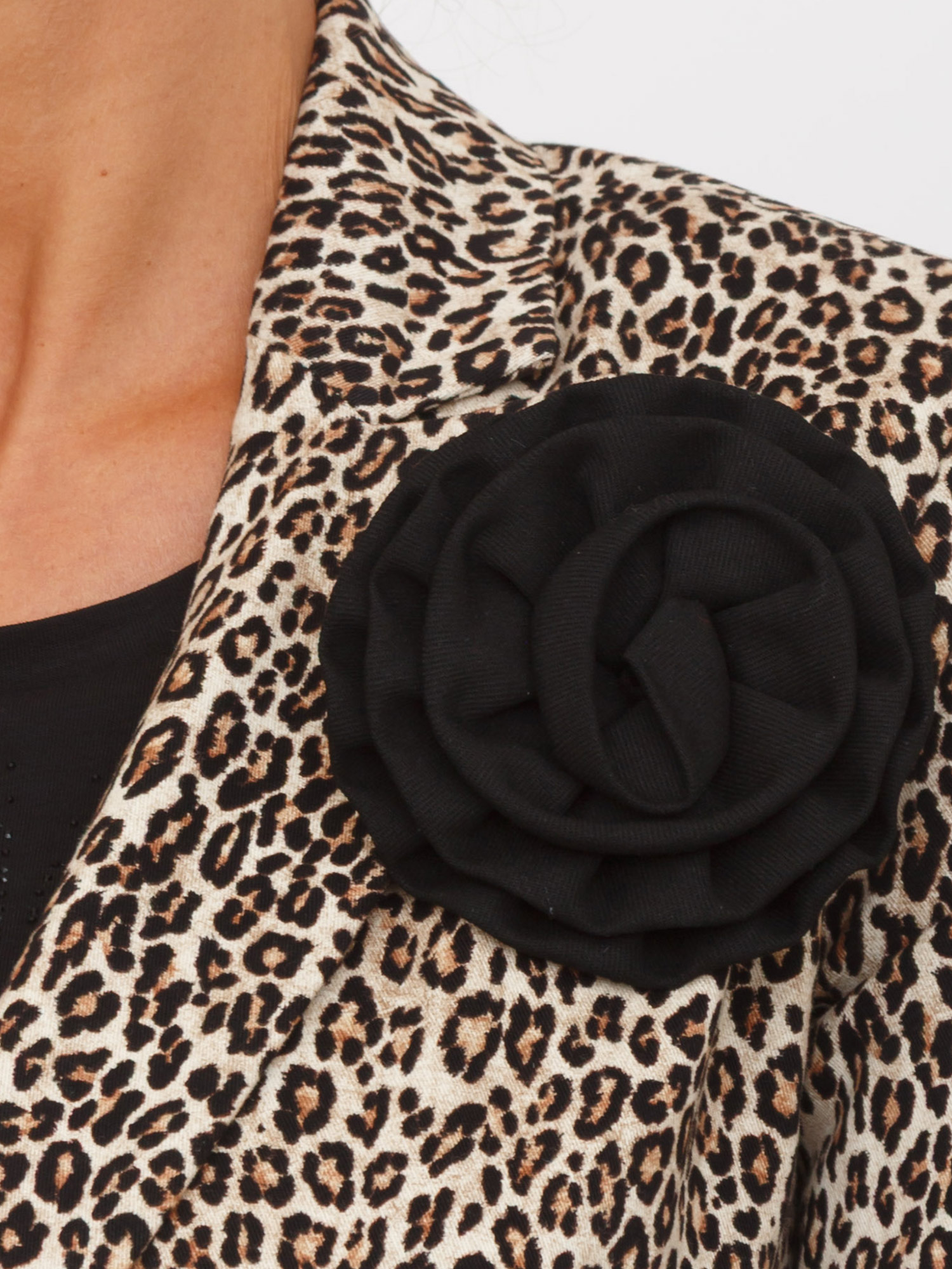 Brand: LIU JOGiacca monopetto Liu Jo donna realizzata in cotone stretch con stampa animalier all over. Vestibilità slim, revers a lancia, spilla floreale removibile e tasche a filetto sui lati. La modella è alta 1.72 e indossa la taglia 40.