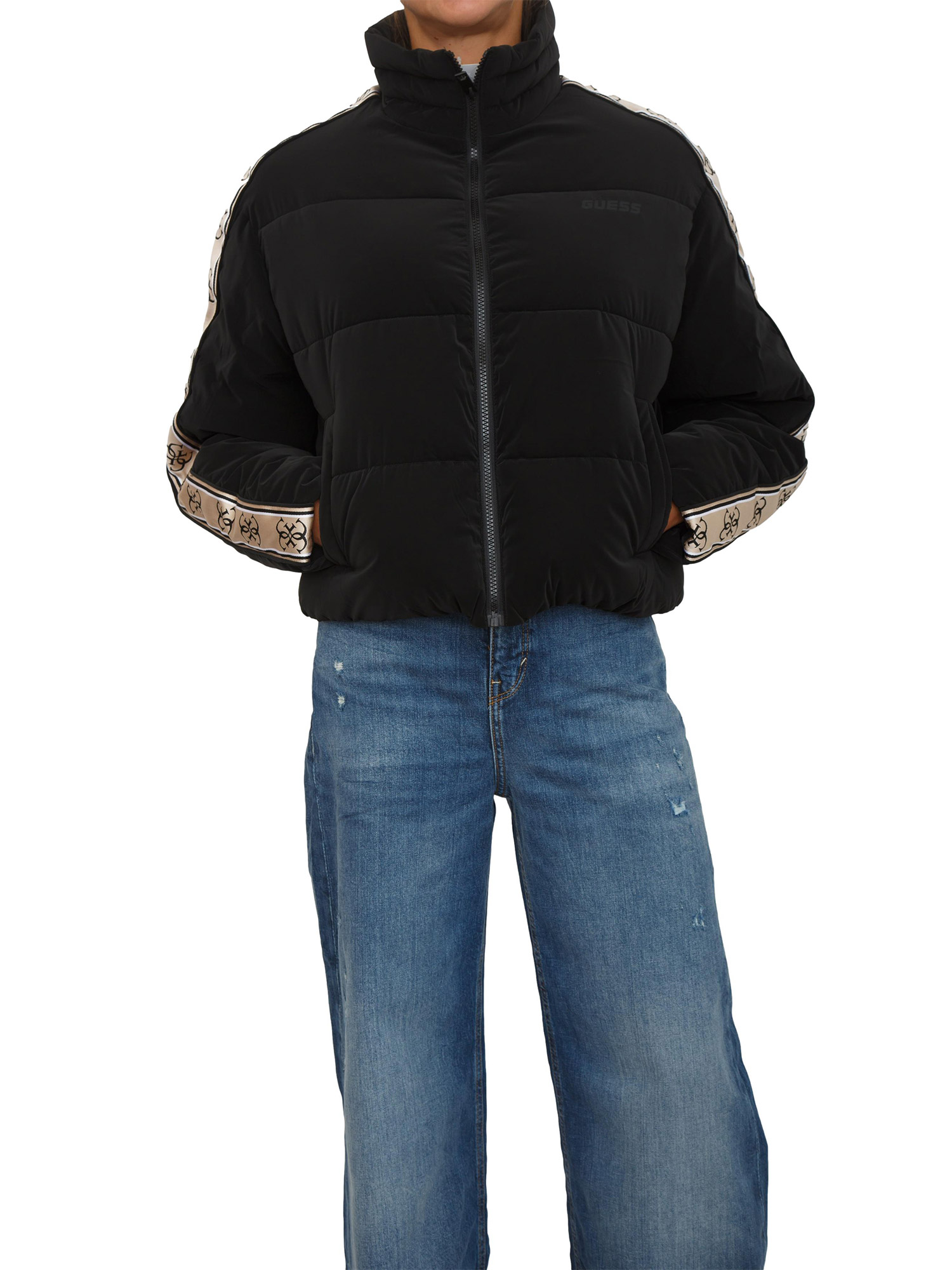 Giubbino Guess Jeans donna in tessuto nero con bande logo