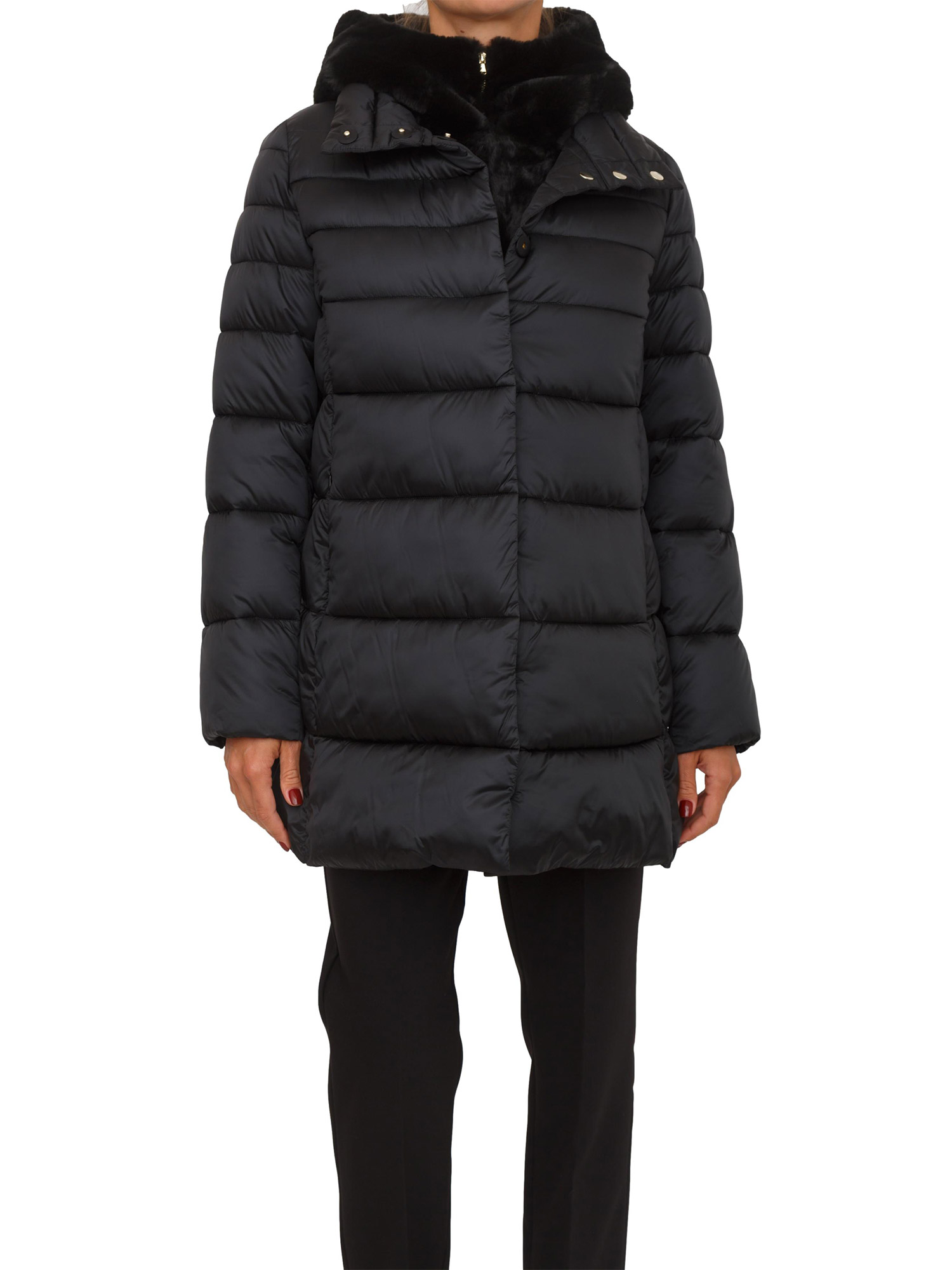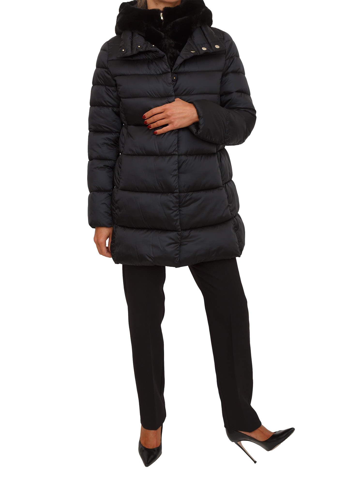 Giubbino Toscana Emme Marella in tessuto nero con cappuccio pelliccia