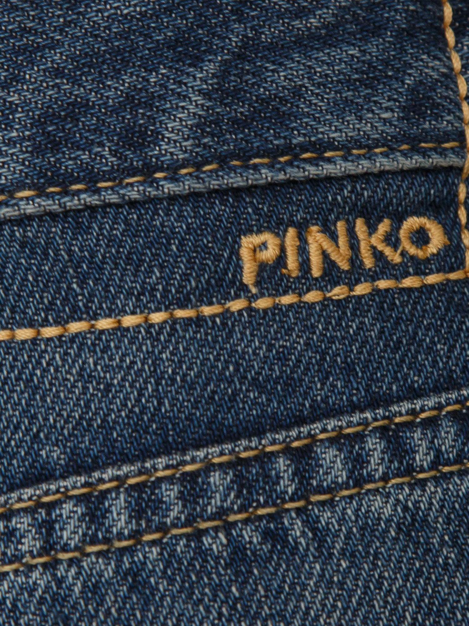 Brand: PINKOJeans cinque tasche Pinko modello wide leg con gamba dritta e ampia, realizzati in soft denim di cotone e lyocell per una mano più fluida e trattati con lavaggio stone wash. Gioca con gli abbinamenti e indossa questi jeans con la vita scesa e il cavallo basso per un look più maschile. La modella è alta 1.77 e indossa la taglia 26.