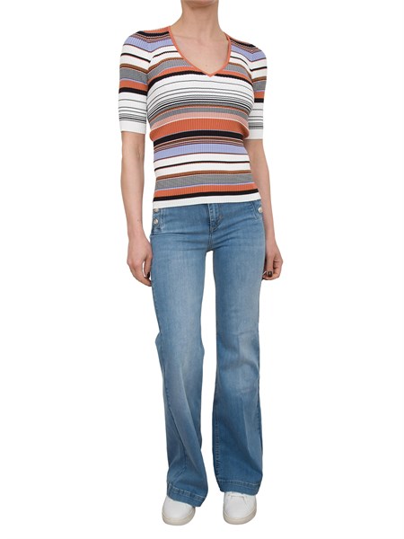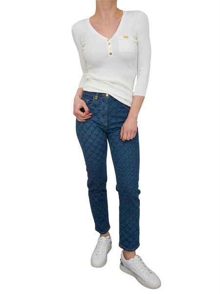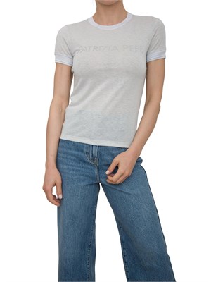 Questa t-shirt Patrizia Pepe a girocollo e maniche corte realizzata in misto viscosa offre una vestibilità regolare che scivola sul corpo con naturalezza. Il logo strass aggiunge un tocco di luminosità ed eleganza, trasformando un capo essenziale in un vero must-have. La modella è alta 1.72 e indossa la taglia 0.