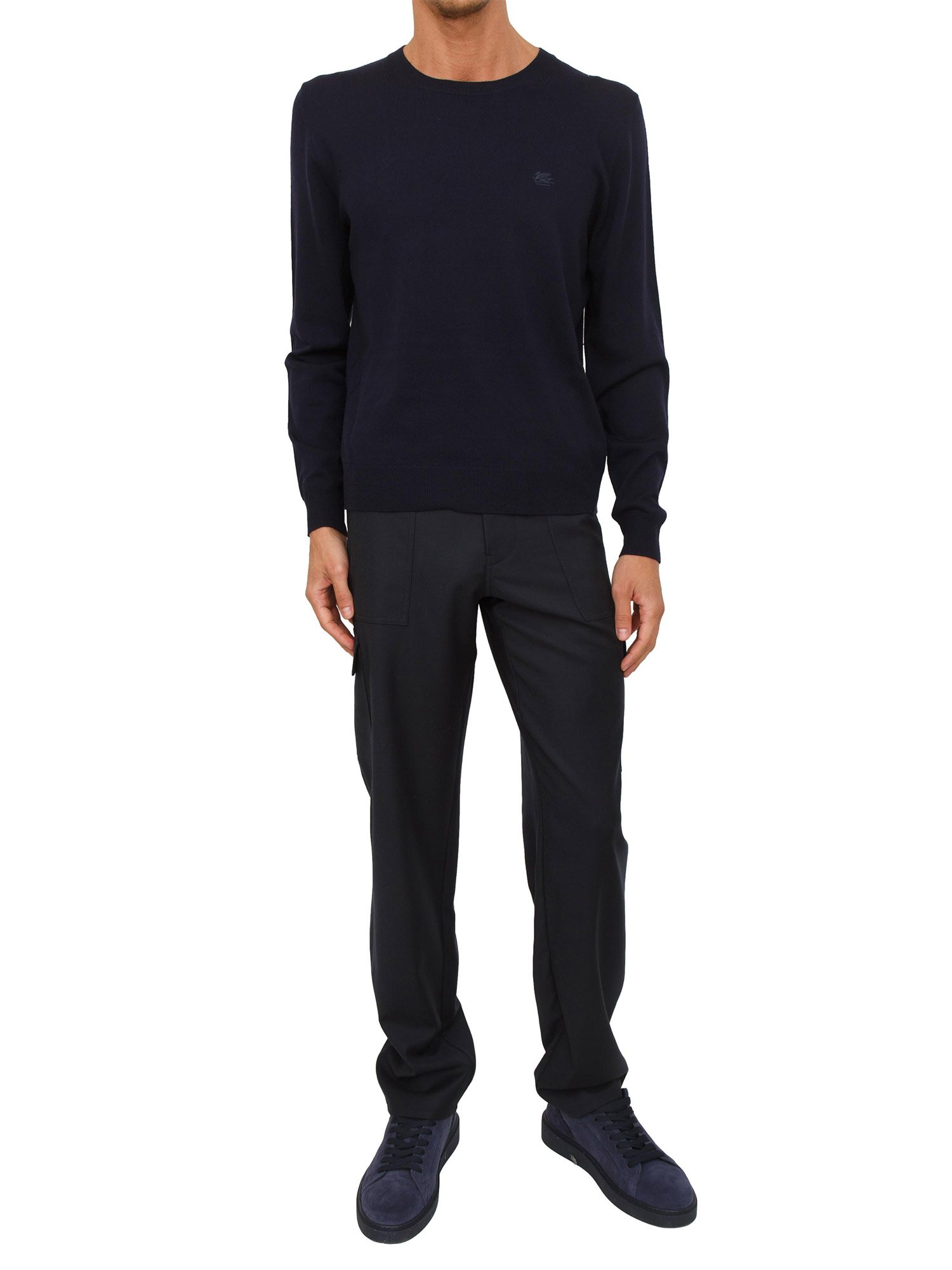 Pantaloni cargo Etro uomo in lana blu con tasconi