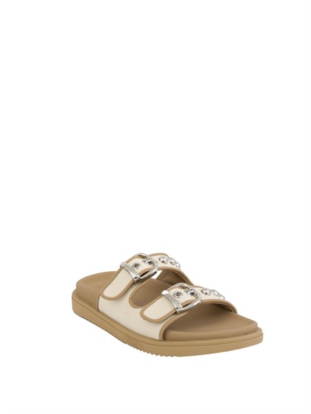 Brand: LIU JOSlippers Liu Jo realizzati in morbida nappa bianco panna con morsetto e accessorio logo metallico. Il design con suola flat dall'altezza di 1,5 cm garantisce comodità e stile inconfondibile.