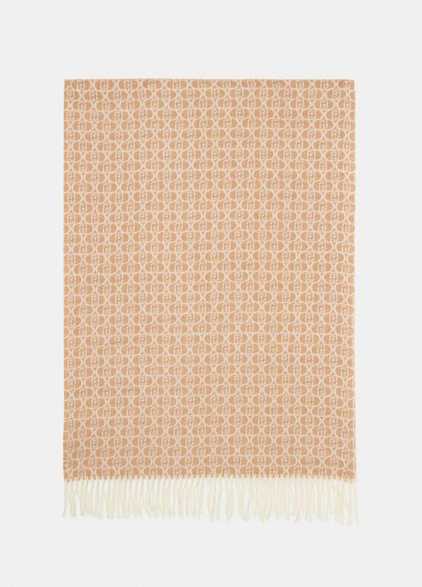 Scialle Liu Jo tessuto jacquard cammello con logo