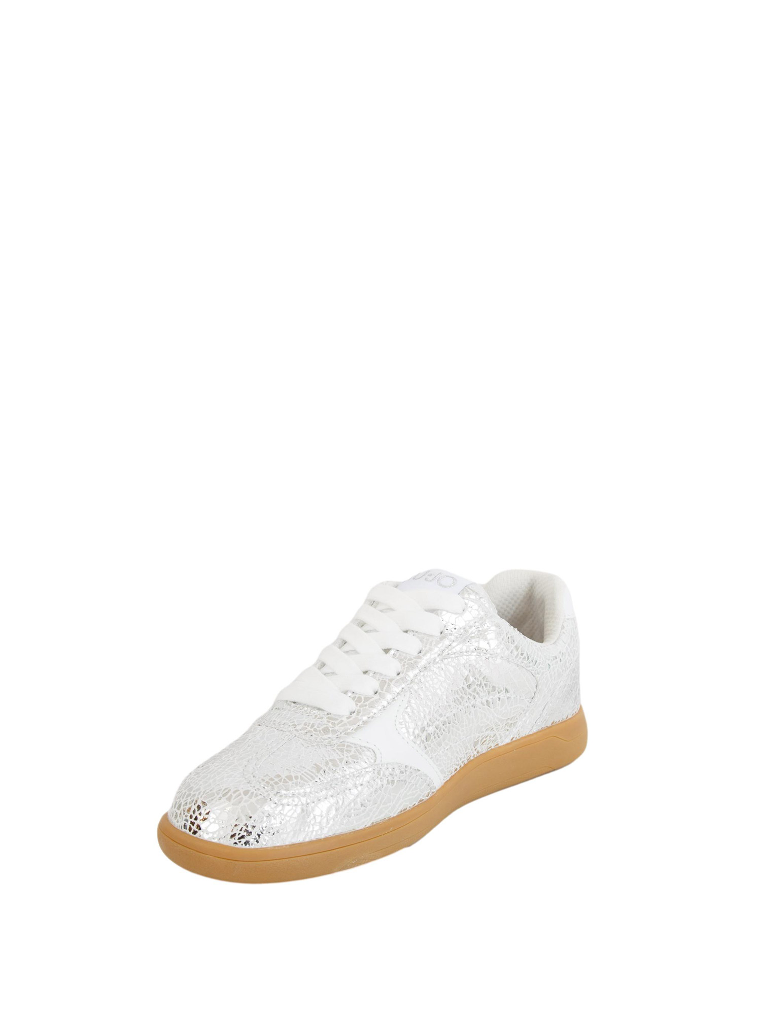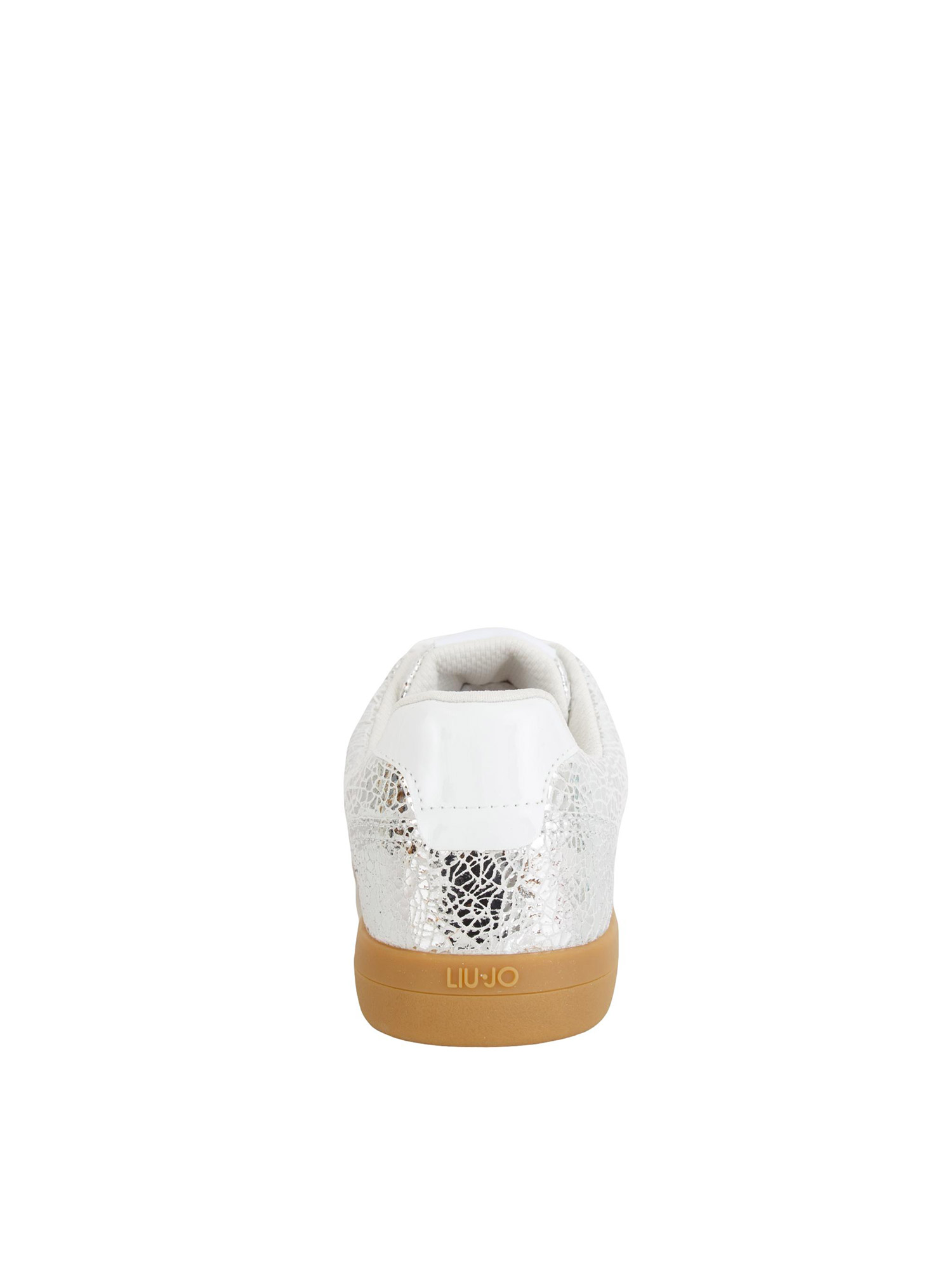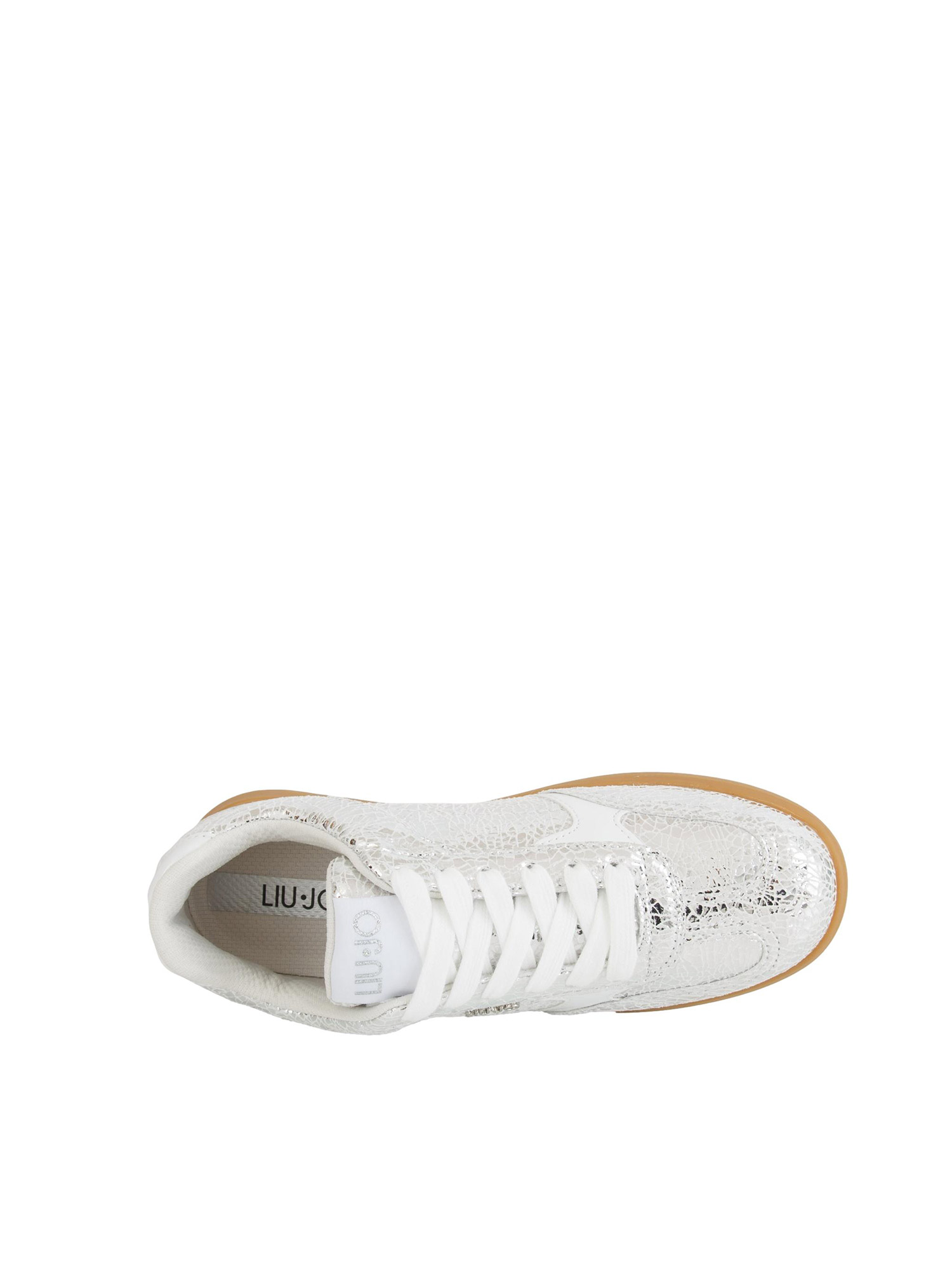 Brand: LIU JOSneakers donna Liu Jo con tomaia in pelle crackle laminata argento con inserti glossy e logo lettering. Dotata di linguetta con logo jacquard e lacci piatti. Suola in gomma alta 2,5 cm con logo in rilievo.