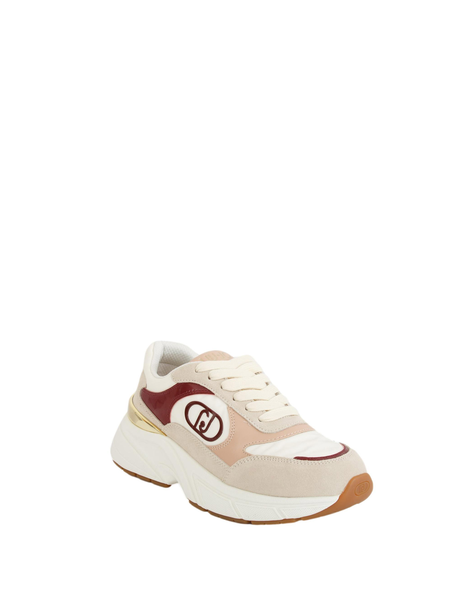 Sneakers Liu Jo donna in suede bianco beige e nylon con inserti glossy