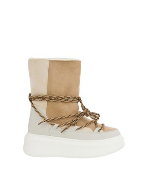 Brand: TWIN-SETStivaletti doposci Twinset con interno in pelliccia sintetica, esterno in microfibra con inserto scamosciato, lacci incrociati.