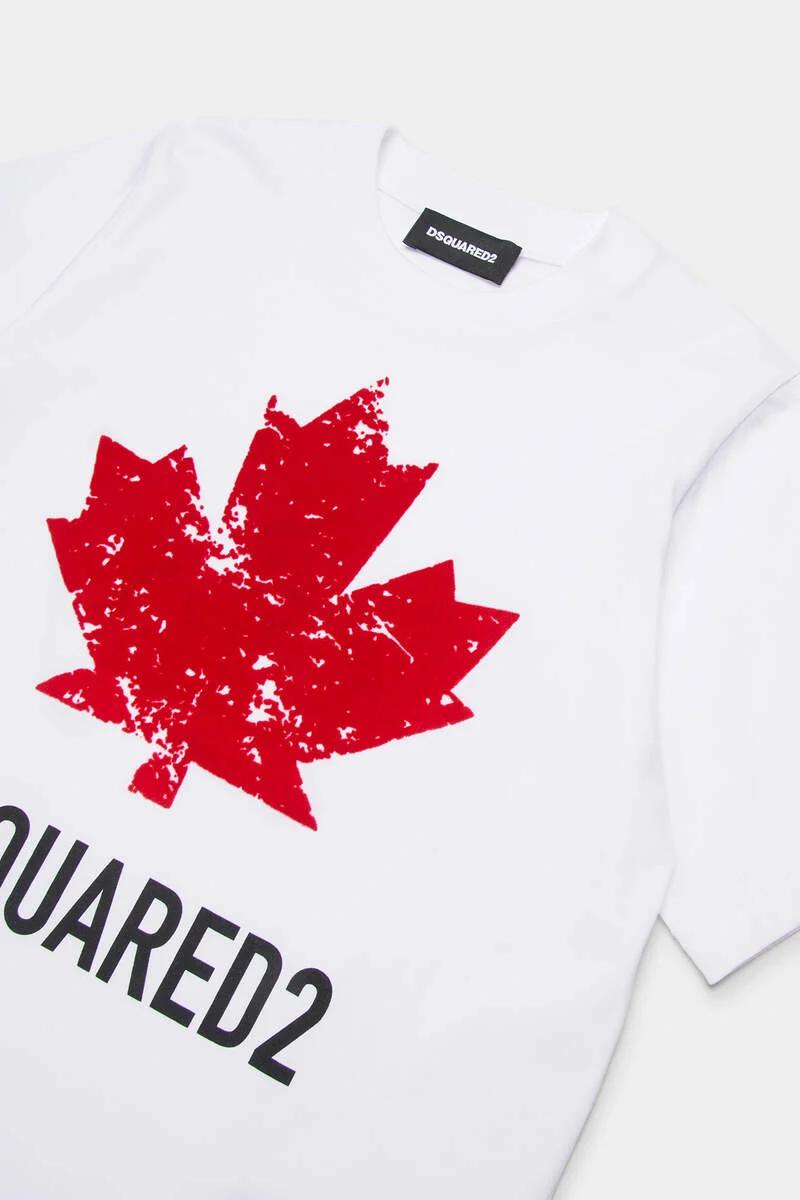 T-shirt Dsquared2 Kids realizzata in jersey di cotone, vestibilità slouchy, girocollo e stampa destroyed foglia d'acero.