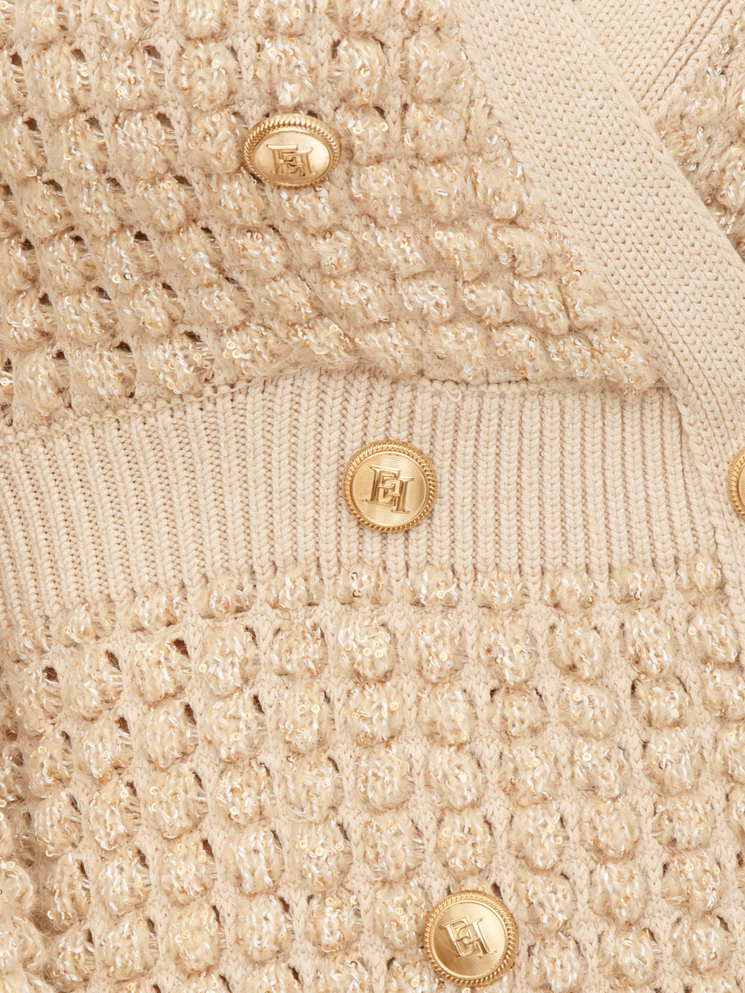 Abito Elisabetta Franchi in maglia bouclÉ beige con paillettes