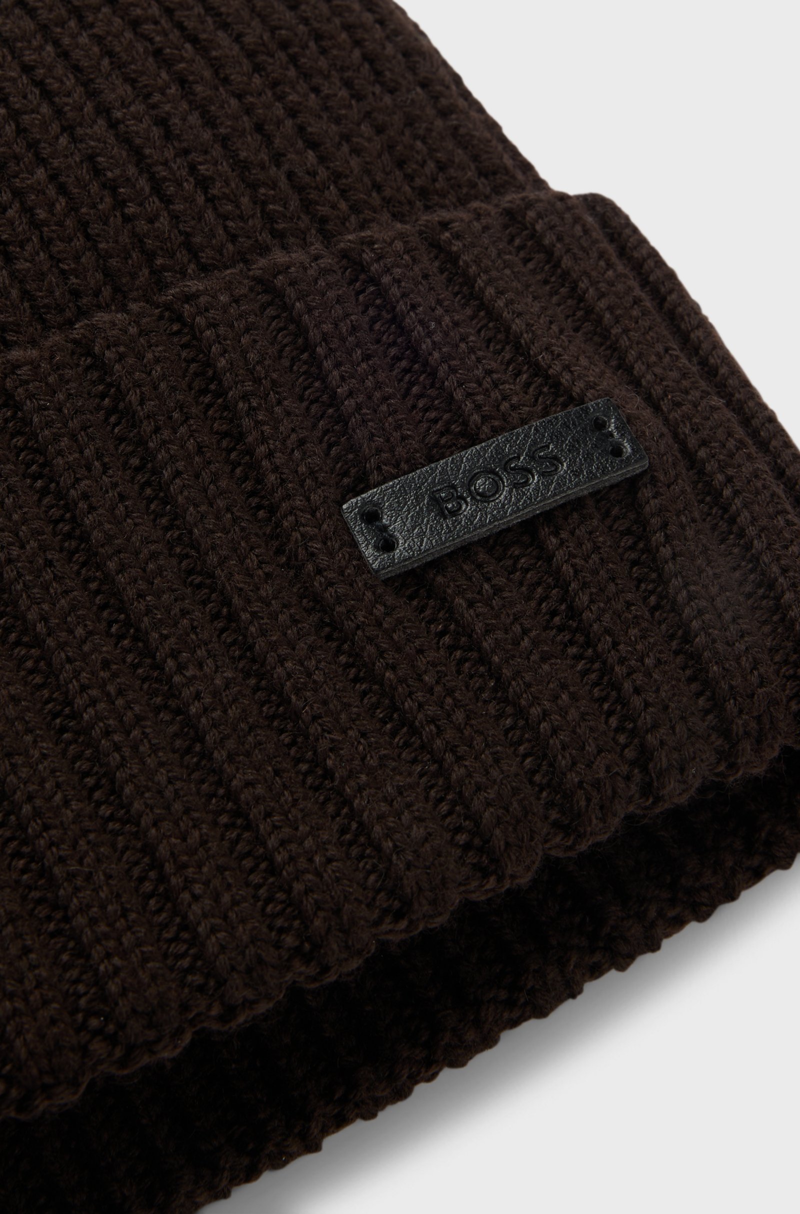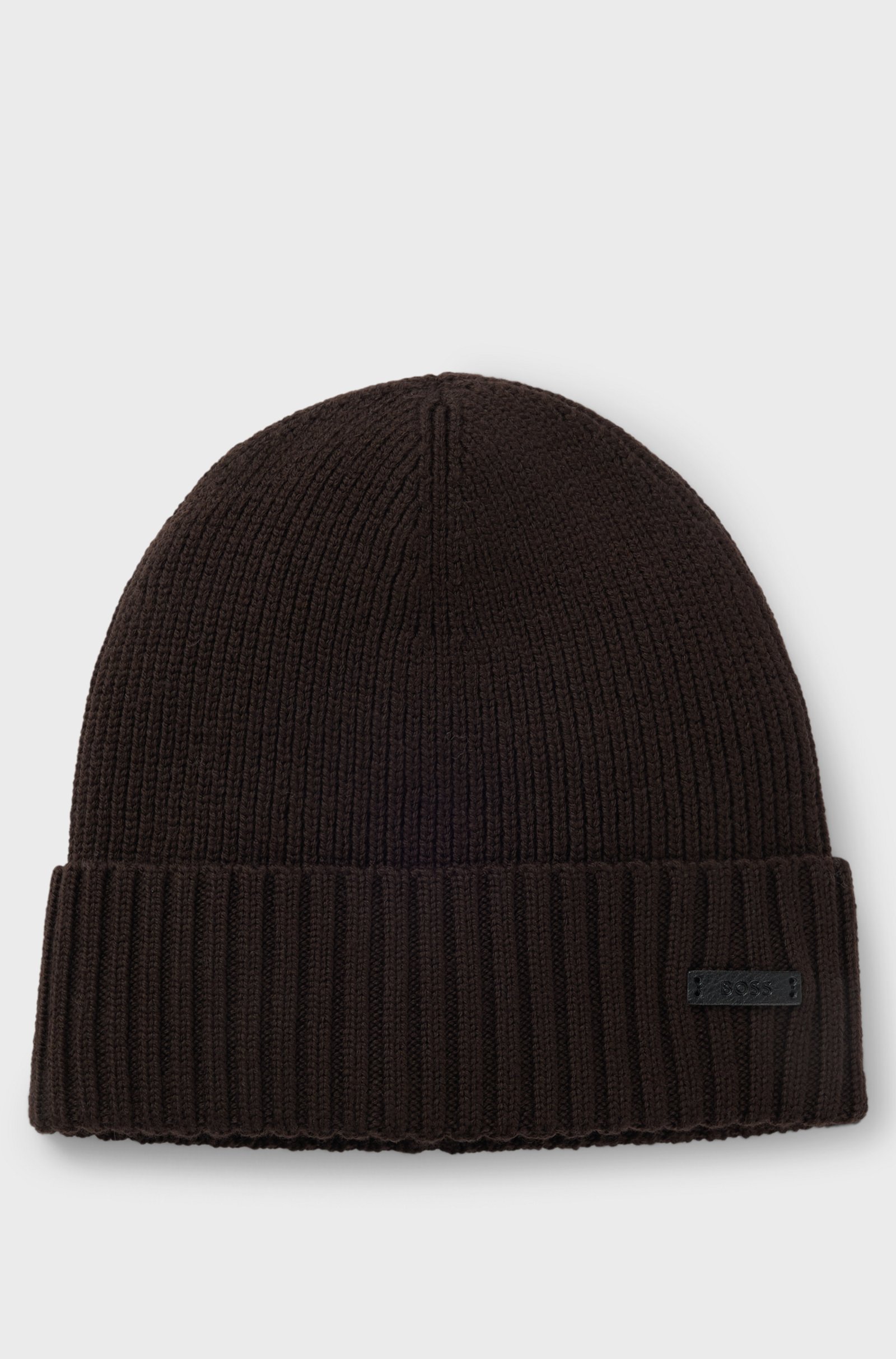 Berretto Boss uomo in lana vergine marrone