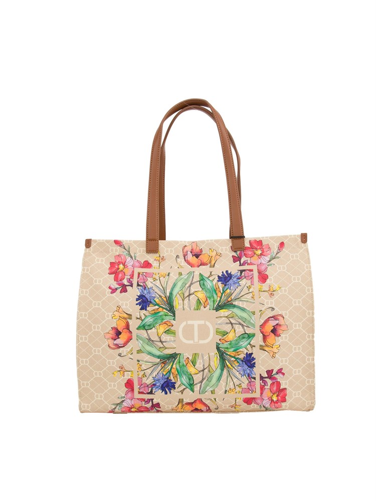 TWIN-SET Borsa shopper Twinset in canvas con stampa fiori
