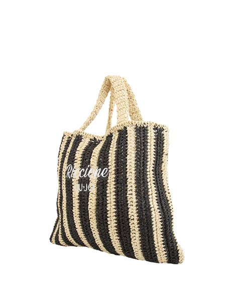 TWIN-SET Borsa shopper Twinset in canvas con stampa righe multicolore e logo