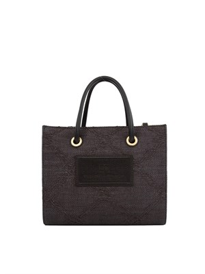 Brand: ELISABETTA FRANCHIBorsa tote piccola Elisabetta Franchi realizzata in rafia jacquard con disegno a losanghe, impreziosita da dettagli in metallo dorato per una nota di luce. Una patch con logo ricamato completa l'accessorio. Dimensioni: 25 x 20 x 12 cm