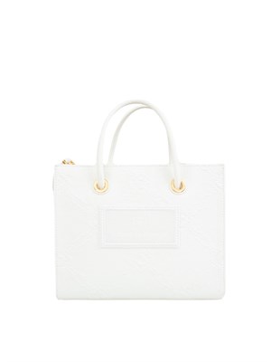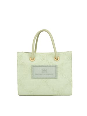 Brand: ELISABETTA FRANCHIBorsa tote piccola Elisabetta Franchi realizzata in rafia jacquard con disegno a losanghe, impreziosita da dettagli in metallo dorato per una nota di luce. Una patch con logo ricamato completa l'accessorio. Dimensioni: 25 x 20 x 12 cm