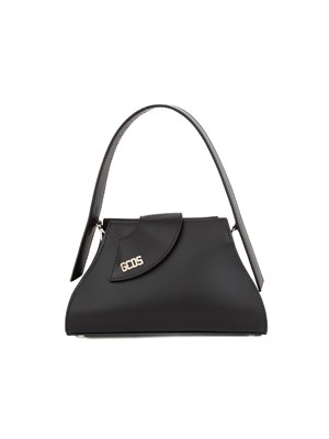 Borsa GCDS Comma in pelle gommata, formato small, dalla particolare forma svasata. Patta curva asimmetrica in pelle con grana a contrasto, con logo GCDS in nichel lucido sull'estremità e bottone calamitato. Manico in pelle.
