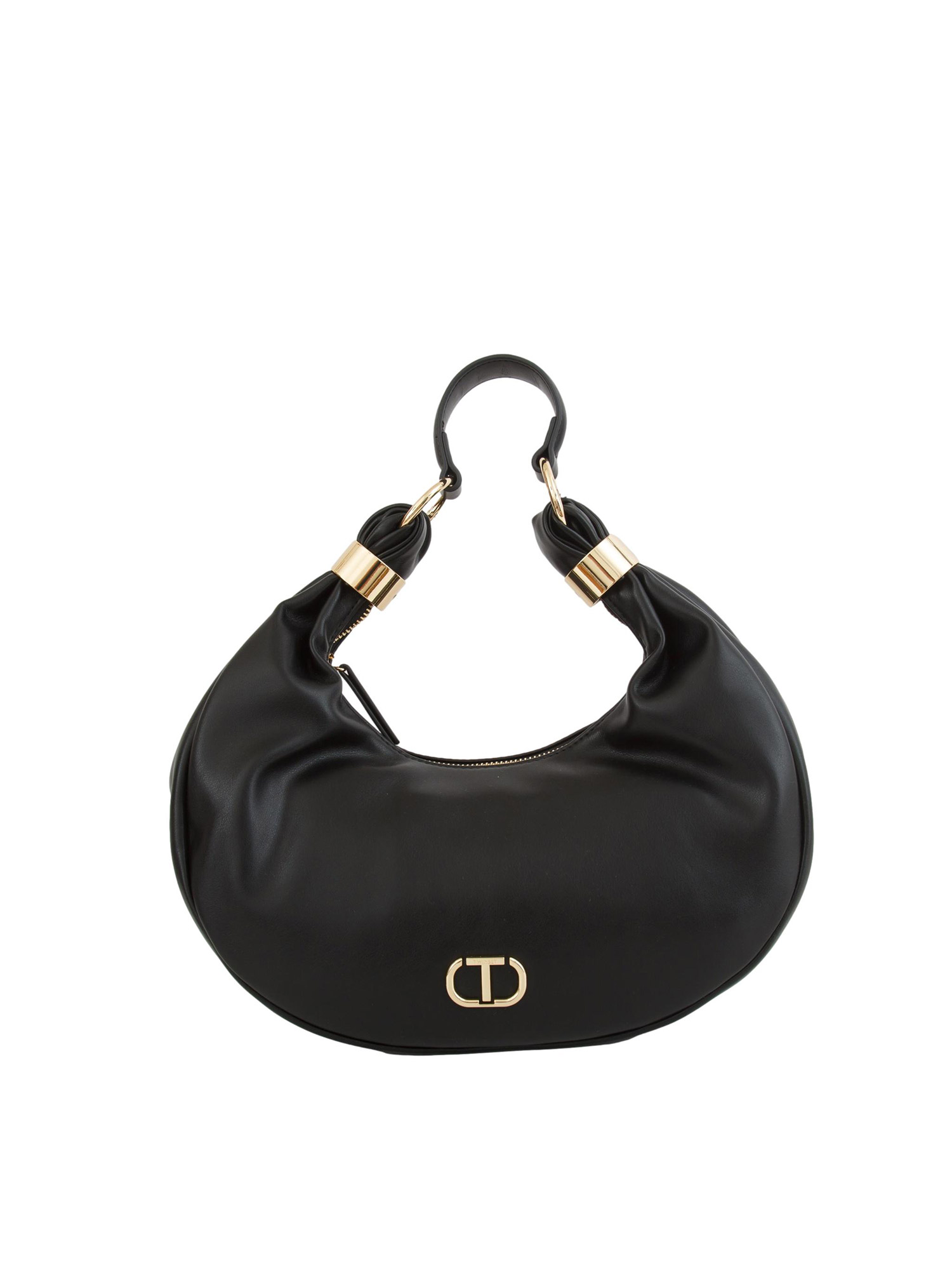 TWIN-SET Borsa hobo Twinset in ecopelle nera con inserti oro