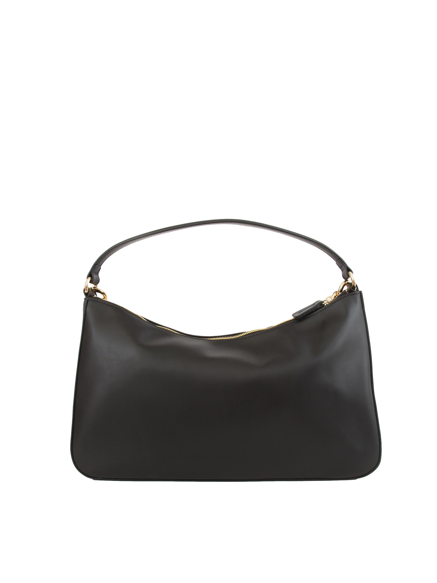 Brand: TWIN-SETBorsa hobo 'Liliane' Twinset realizzata in pelle di vitello liscio con trattamento anti goccia e antigraffio. Design a colonna, con logo impresso, foderato in twill di misto cotone con due manici staccabili, da indossare simultaneamente o separati: uno in pelle sagomato e imbottito, l'altro è una catena in lega leggera in galvanica oro con l'Oval T. Dimensioni: 38x23x10 cm.