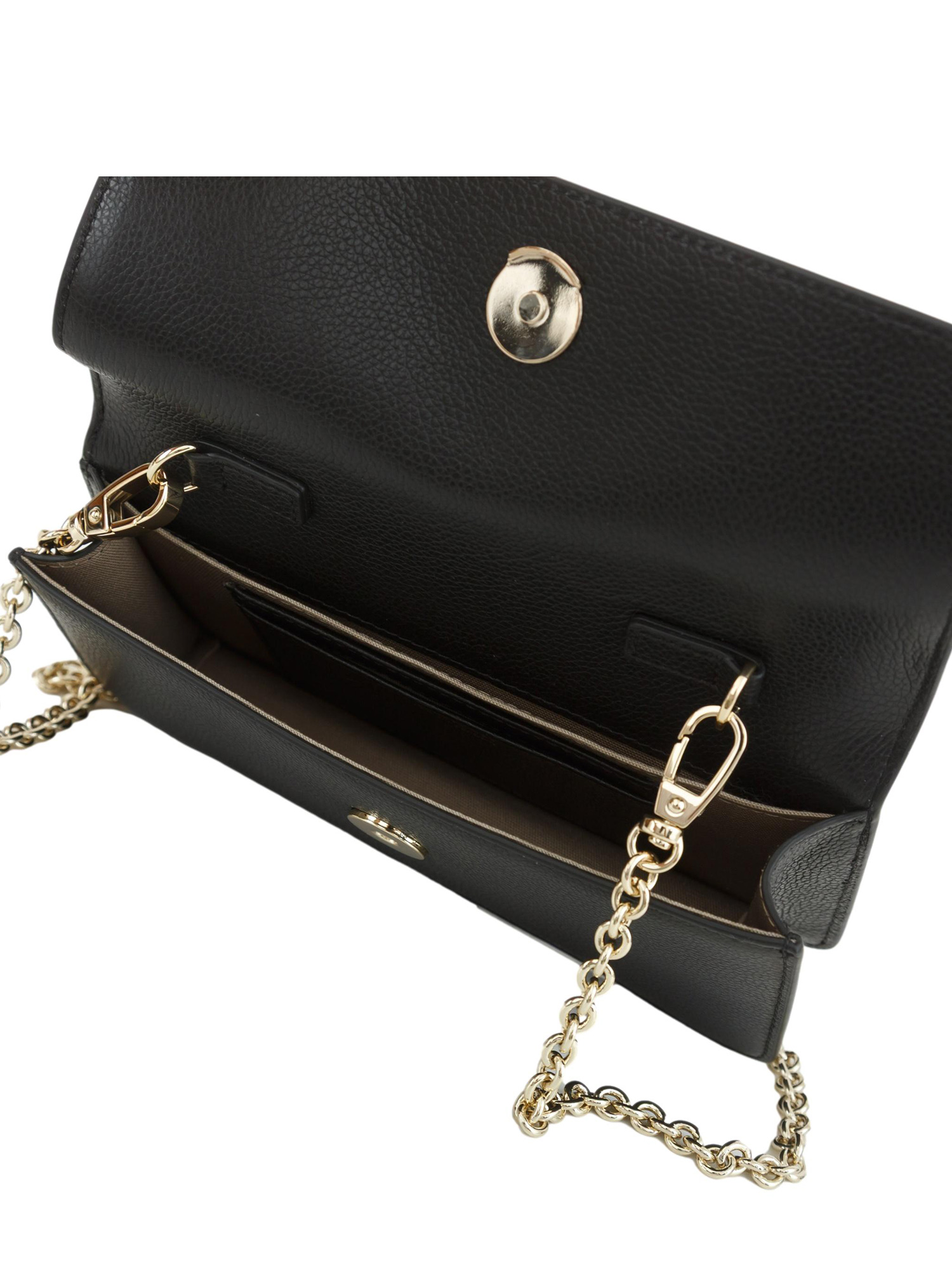 Borsa mini bag Emporio Armani in pelle bottalata nera con catena oro