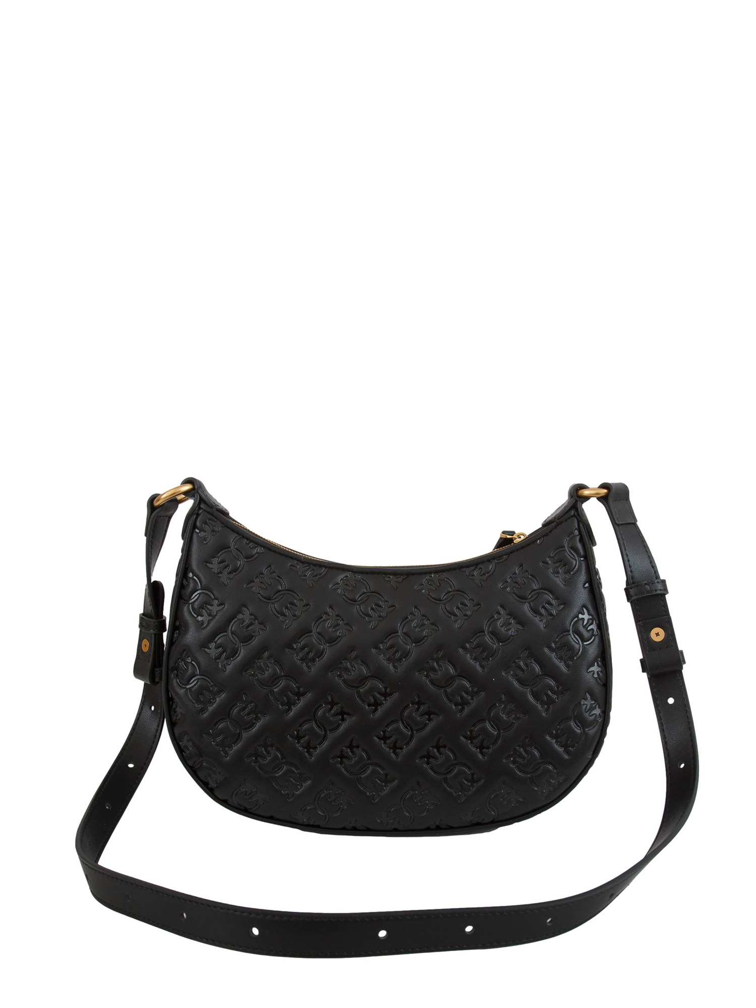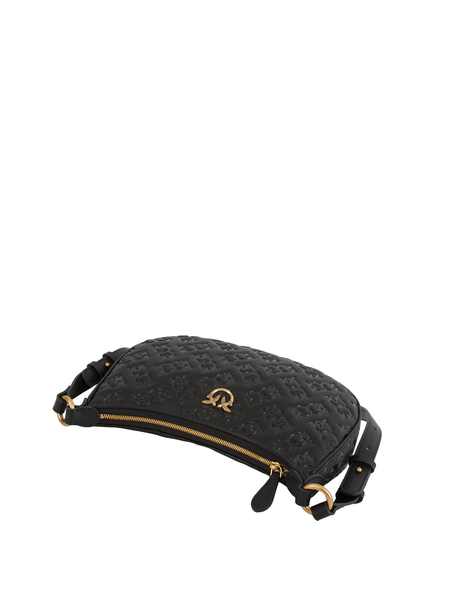 Borsa Mini Love Bag Half Moon Pinko in pelle nera con logo all over