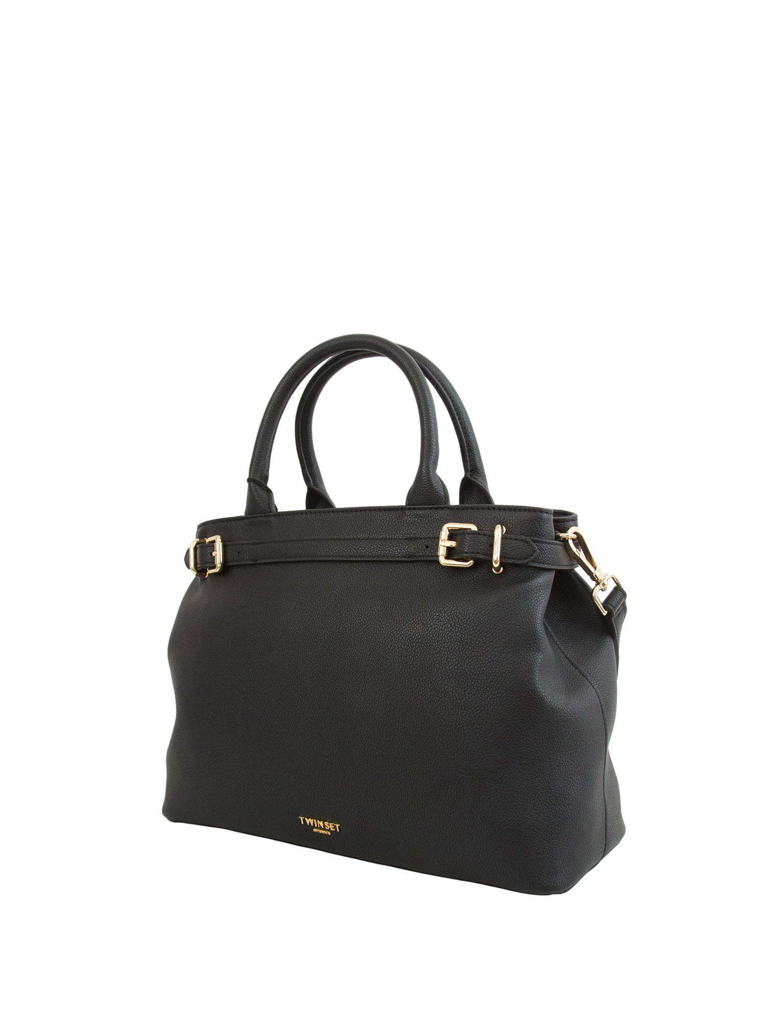 TWIN-SET Borsa shopper Twinset con fibbie e tracolla in pelle ecologica nera