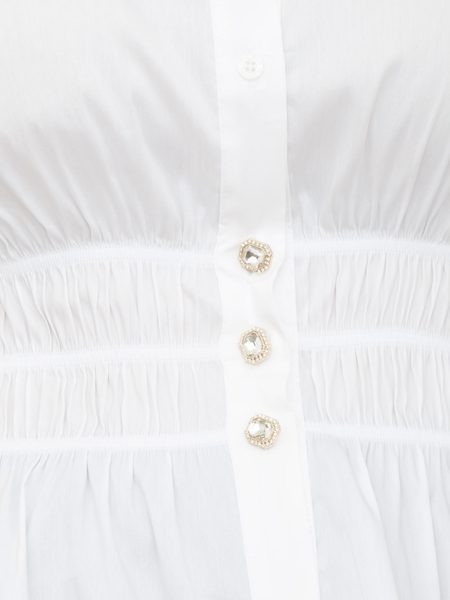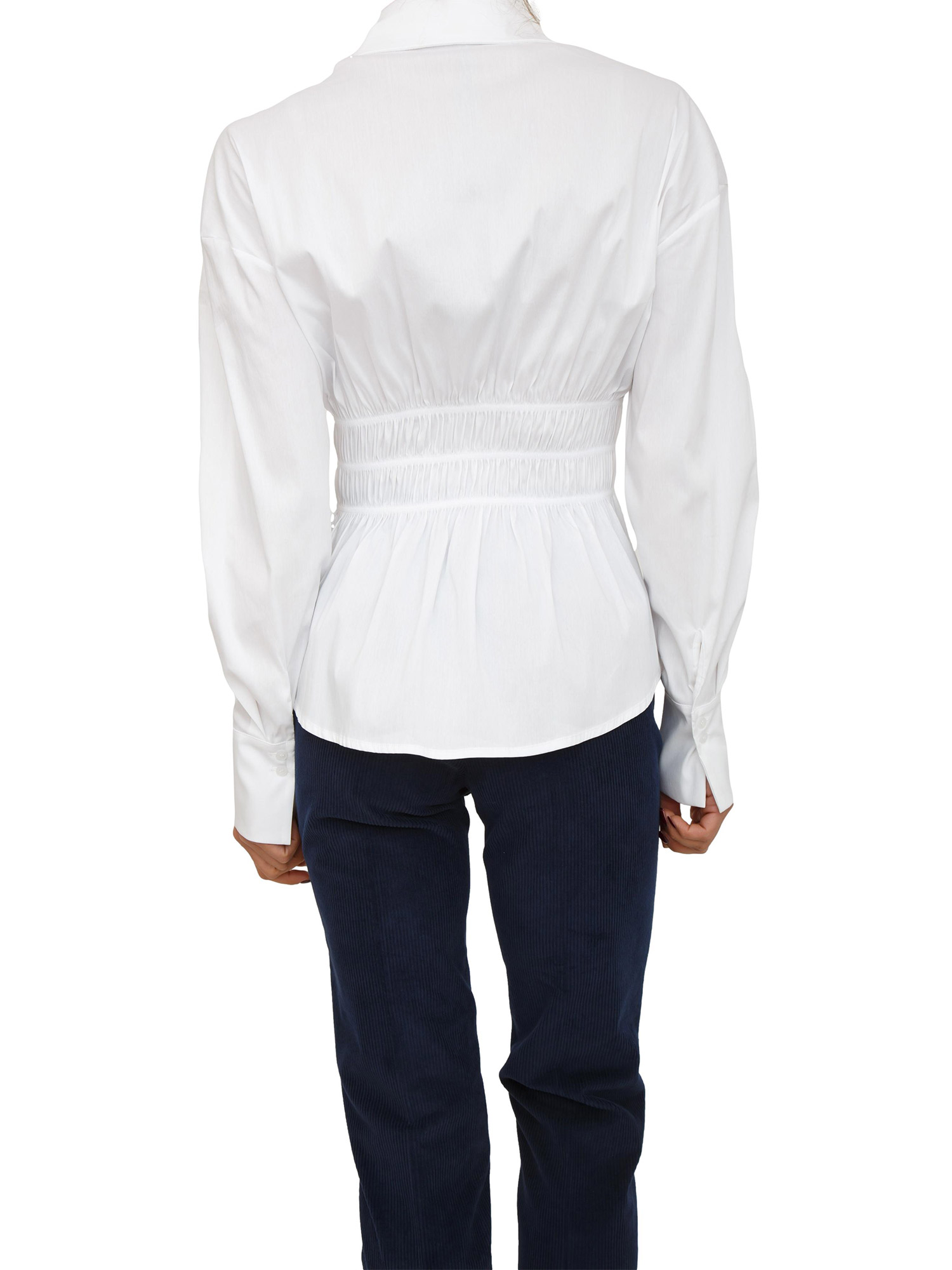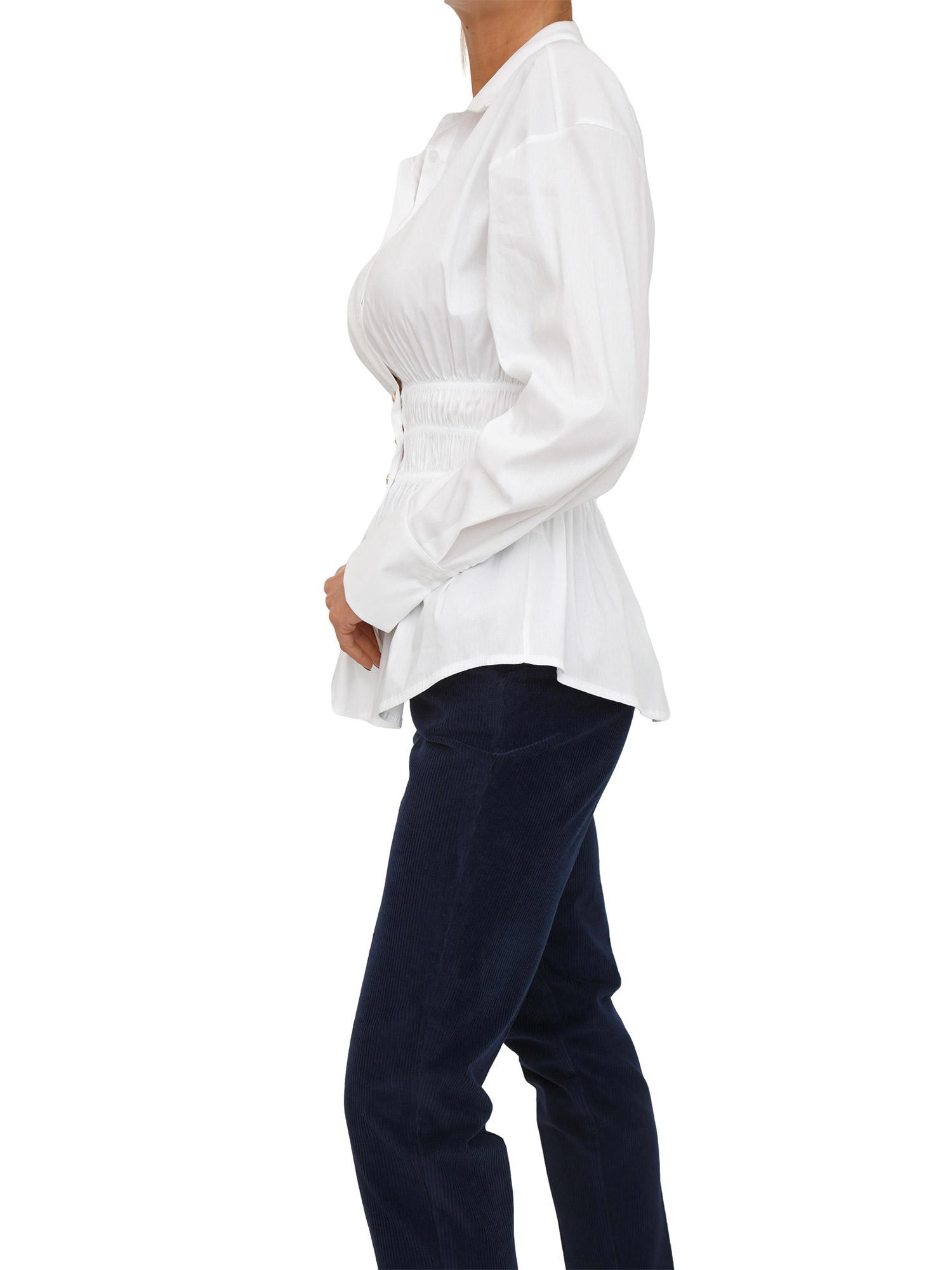 Brand: FRACOMINACamicia donna Fracomina con vestibilità regular realizzata in popeline stretch con colletto classico. Design caratterizzato da punto smock in vita, bottoni centrali dorati e maniche lunghe con polsini alti. La modella è alta 1.72 e indossa la taglia S.