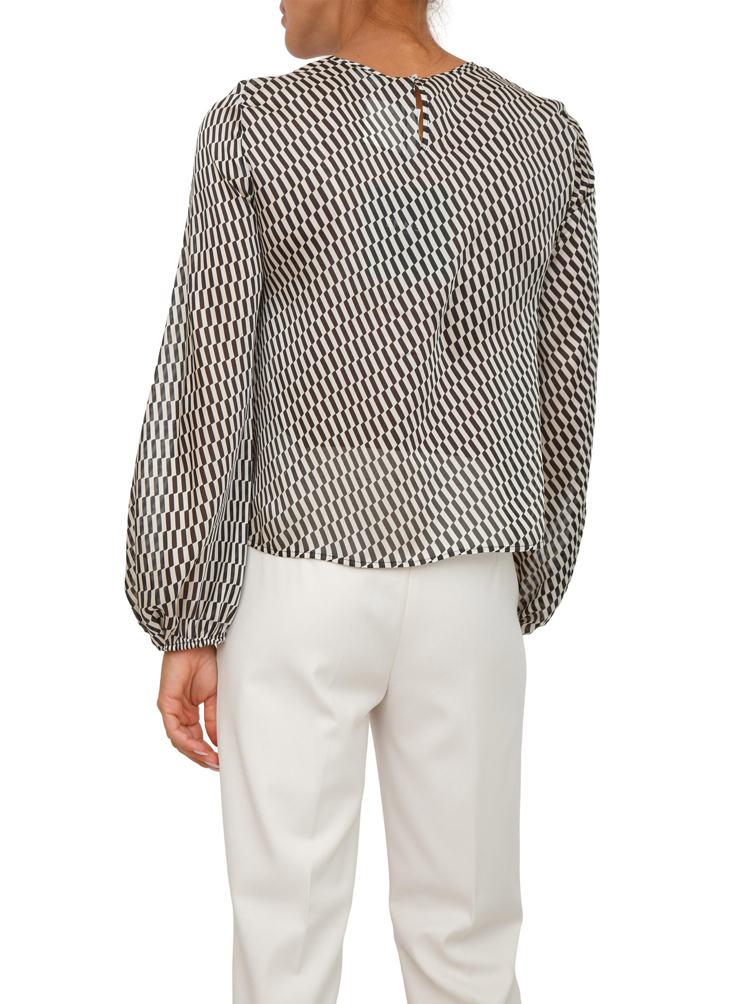 Camicia manica lunga Emme Marella in raso leggero con stampa geometrica nera e bianca