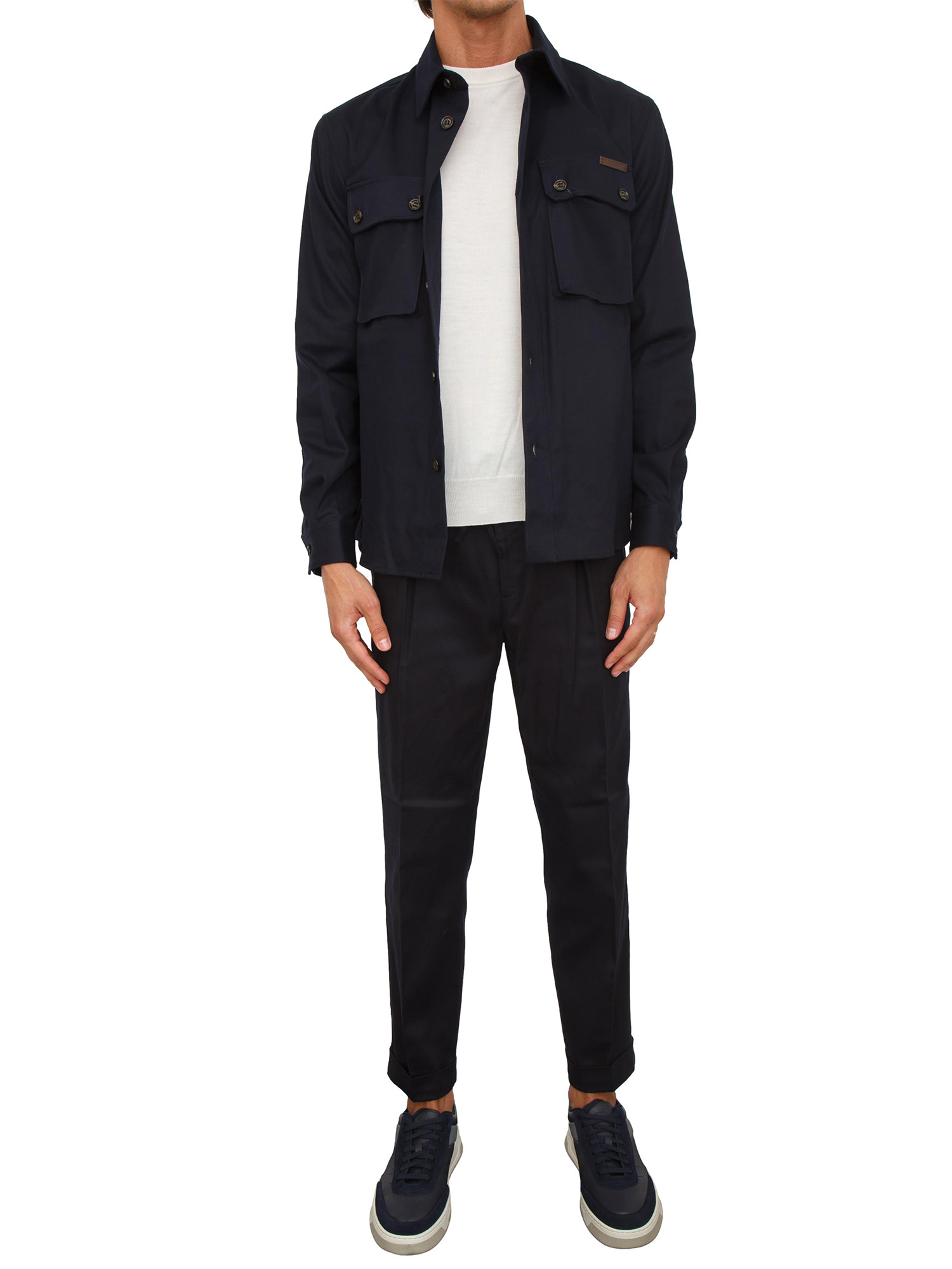Brand: PAOLO PECORACamicia overshirt Paolo Pecora in gabardina dal design pulito e contemporaneo con tasche frontali con patta e chiusura con bottoni per look sofisticato. Un capo versatile e raffinato, da indossare come camicia o come overshirt nelle mezze stagioni. Il modello è alto 1.90m e indossa la taglia M.