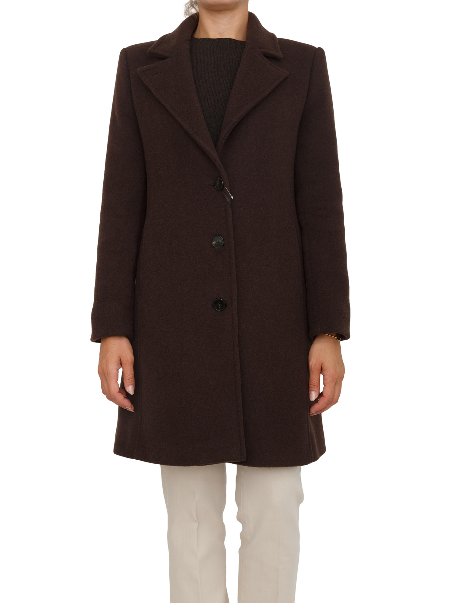 Cappotto Marella in misto lana marrone con fit regular