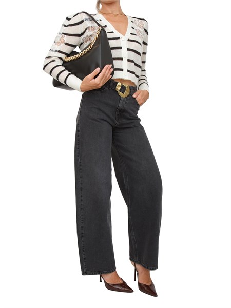 Cardigan cropped Anna Molinari realizzato in misto lana con girocollo e maniche lunghe. Modello aderente con chiusura bottoni tono su tono e bordi lavorati a costine. Bello da indossare con la sua maglietta cropped a maniche corte oppure spezzato con una t-shirt. La modella è alta 1.72 e indossa la taglia 40.