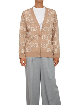Brand: PINKOCardigan over Pinko realizzato in pregiata lana con chiusura bottoni sul davanti e stampa logo all over. Caratterizzato da bordi a tinta unita a contrasto sul fondo. Stupendo da sovrapporre ai tuoi look casual per essere sempre fashion. La modella è alta 1.72 e indossa la taglia XS.