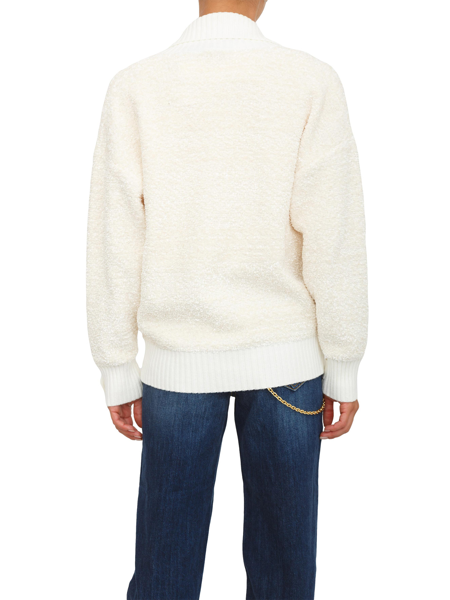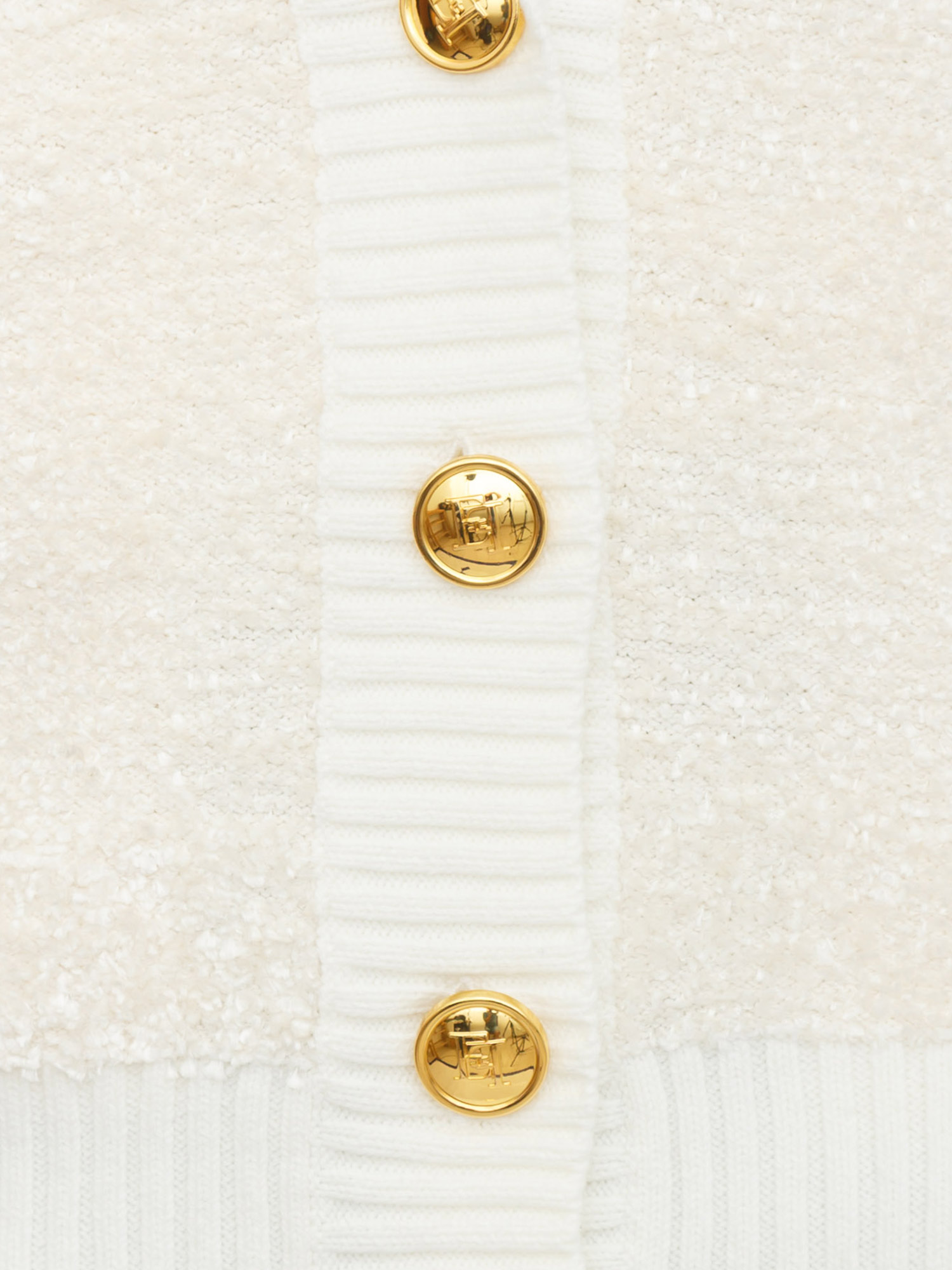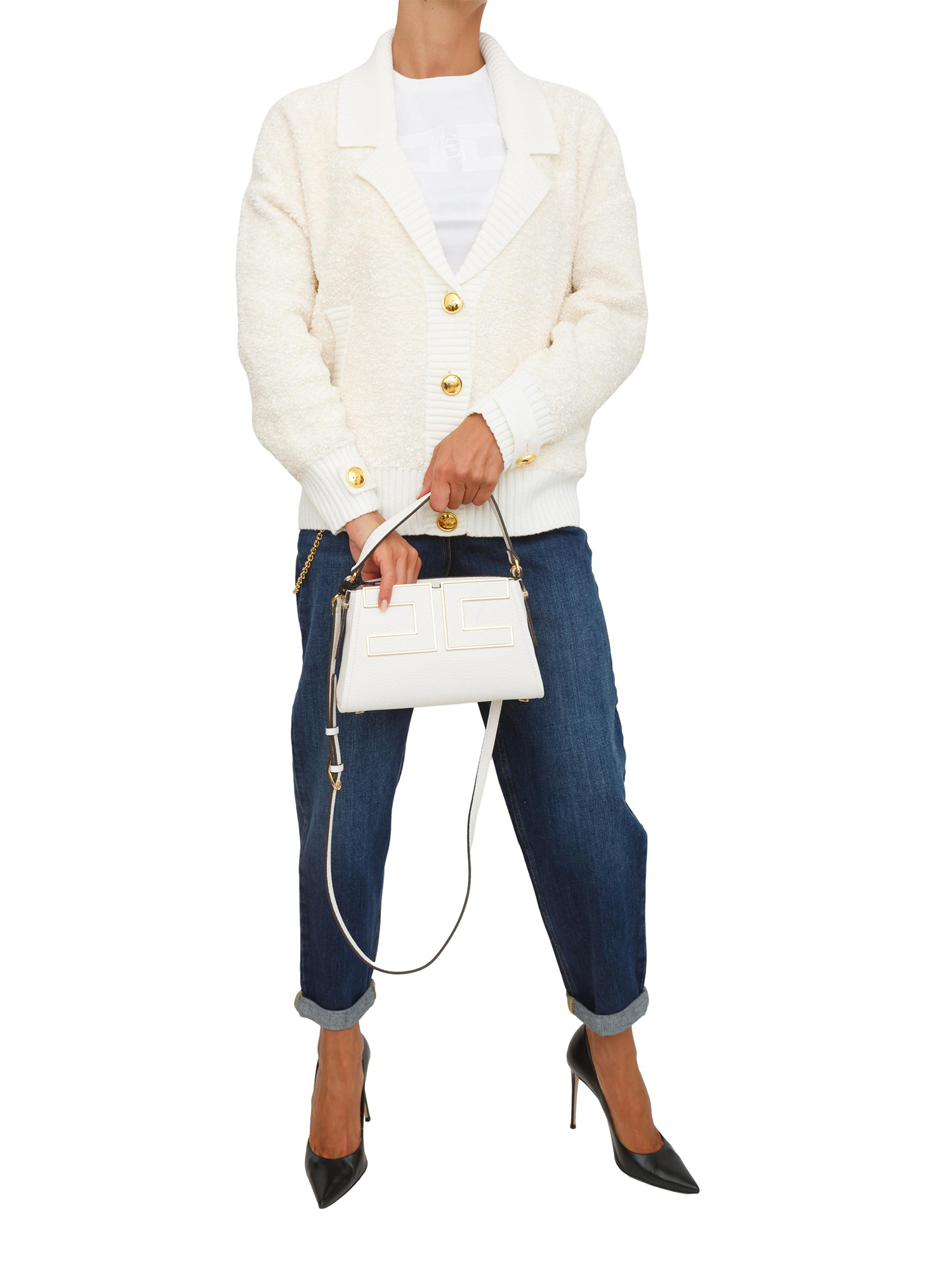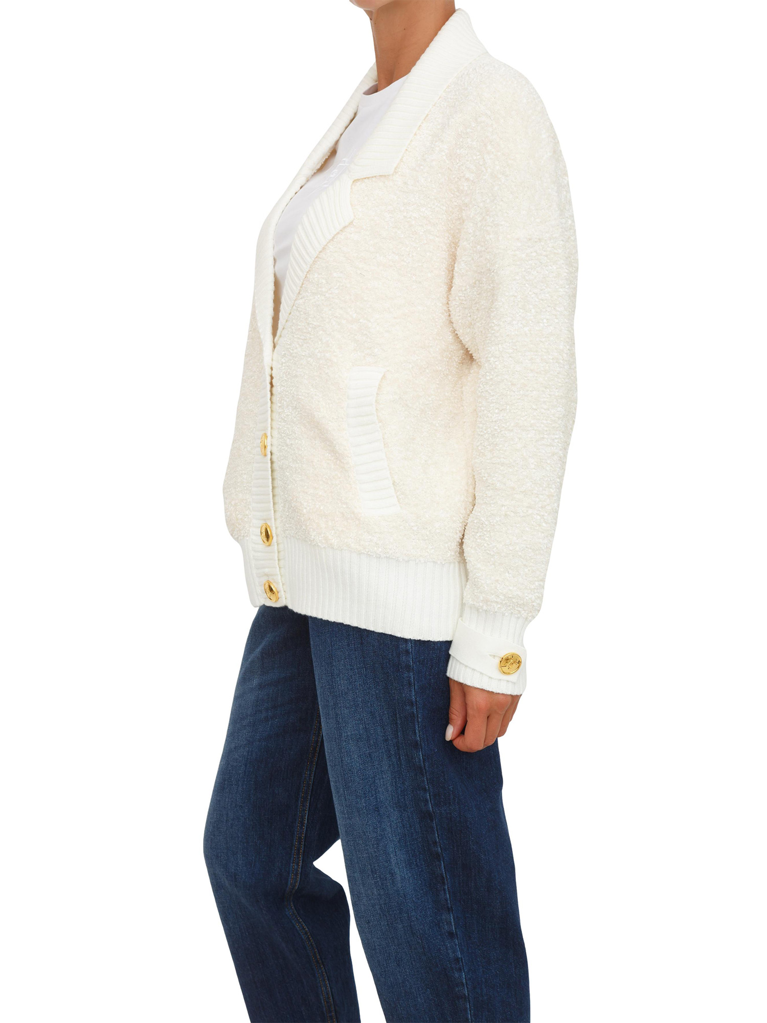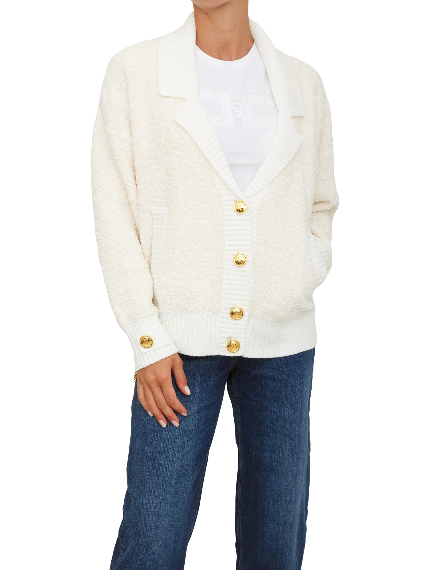 Cardigan Elisabetta Franchi in ciniglia bouclé bianco con bottoni gioiello