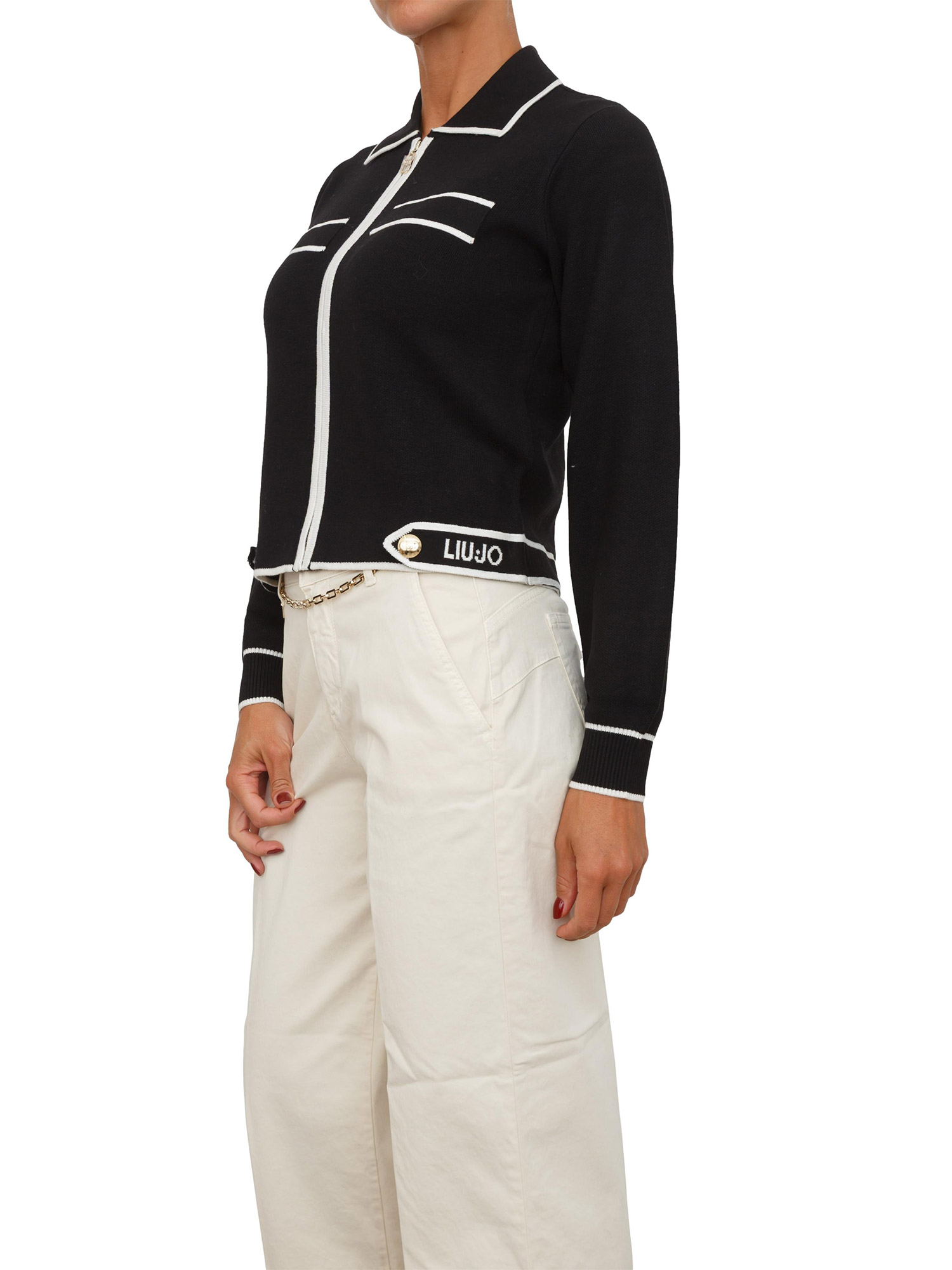 Brand: LIU JOCardigan Liu Jo realizzato in maglia di misto seta con dettagli a contrasto e logo jacquard. Colletto a camicia, bottoni sul fondo e taschini sul petto. La modella è alta 1.72 e indossa la taglia XS.