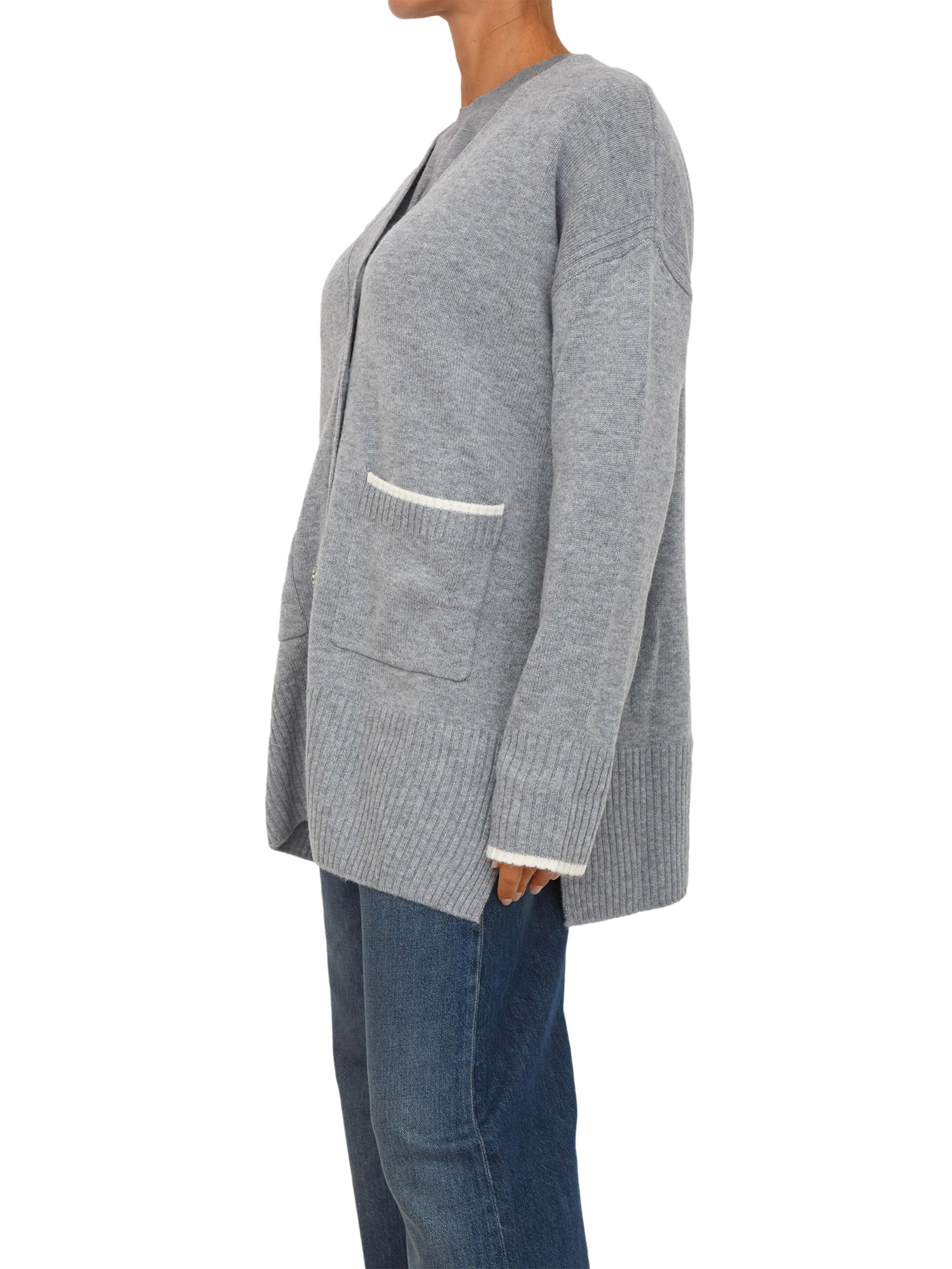 Brand: PINKOCardigan lungo Pinko con scollo a V e spalle scese, realizzato in soffice misto lana merino e cashmere, il tessuto ideale per le giornate all'insegna del relax. Il filato a contrasto mette in risalto le tasche e gli orli delle maniche in modo discreto e raffinato. La modella è alta 1.72 e indossa la taglia XS.