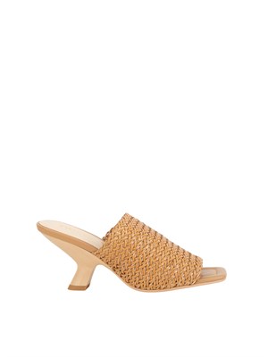 Brand: TWIN-SETSandali mules effetto pelle con motivo intrecciato, punta squadrata e zeppa con tacco medio. Altezza tacco 8 cm
