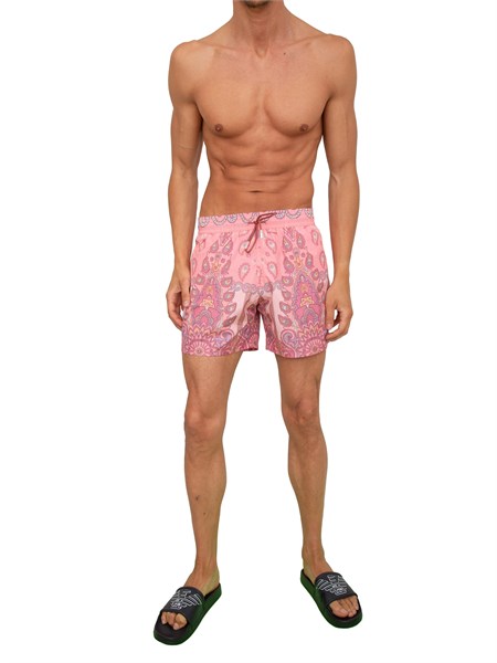 Brand: ETROCostume uomo Etro a pantaloncino in tessuto tecnico decorato con stampa Paisley all over. Il modello è impreziosito da una tasca dietro e da un patch con Pegaso ricamato sul retro nella coulisse. Indossa lo stile anche in spiaggia. Il modello è alto 1.90m e indossa la taglia M.