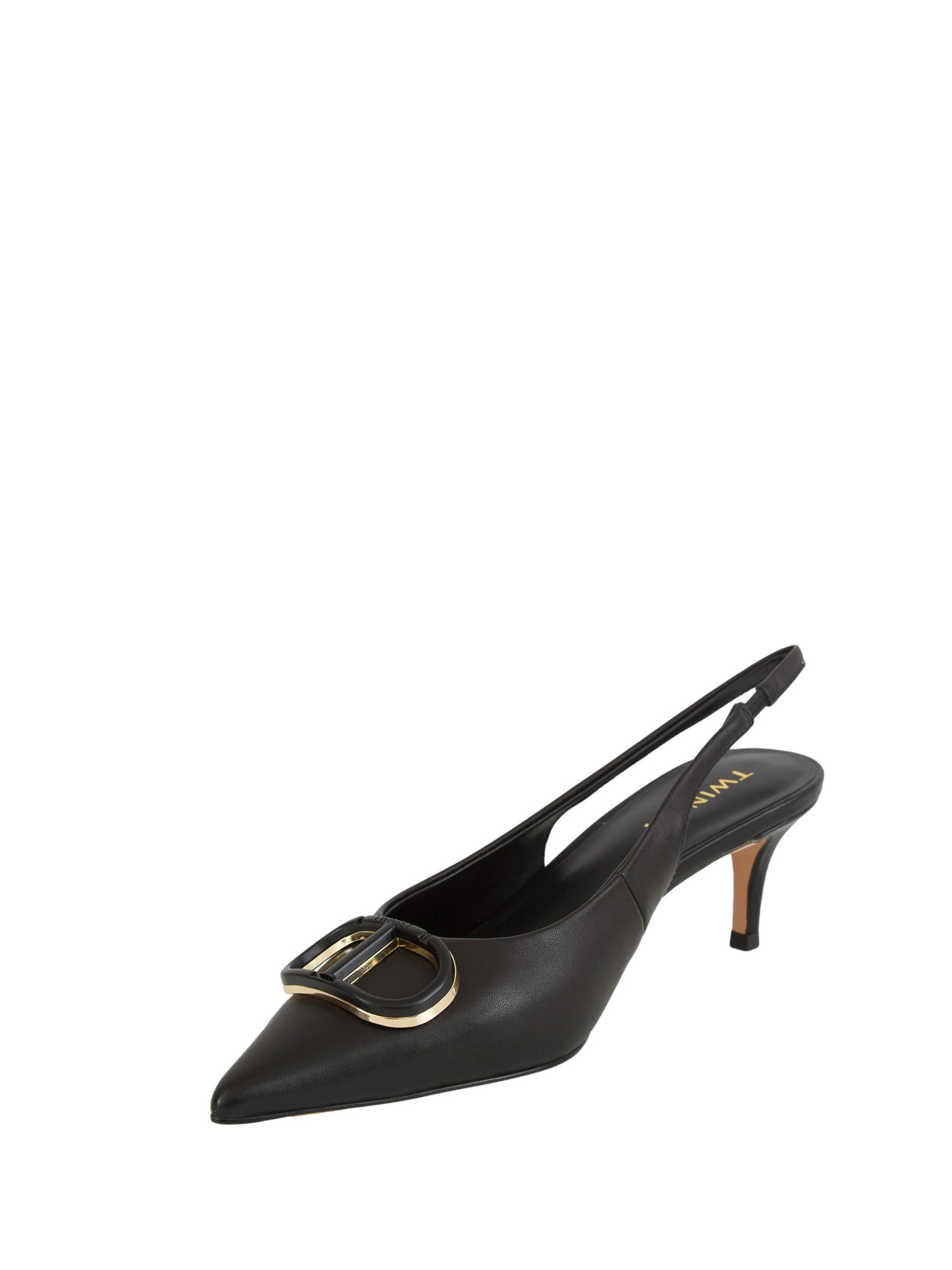 TWIN-SET DÉcolletÉ sling back Twinset in pelle nera con logo