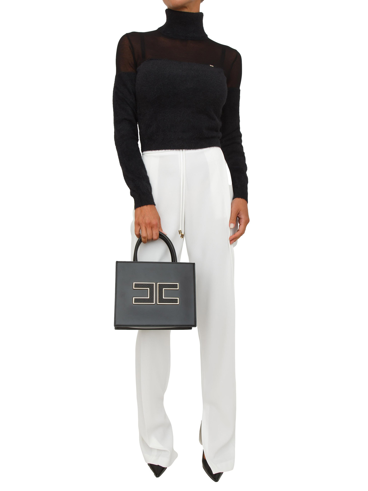 Dolcevita Elisabetta Franchi in maglia nera con logo gioiello