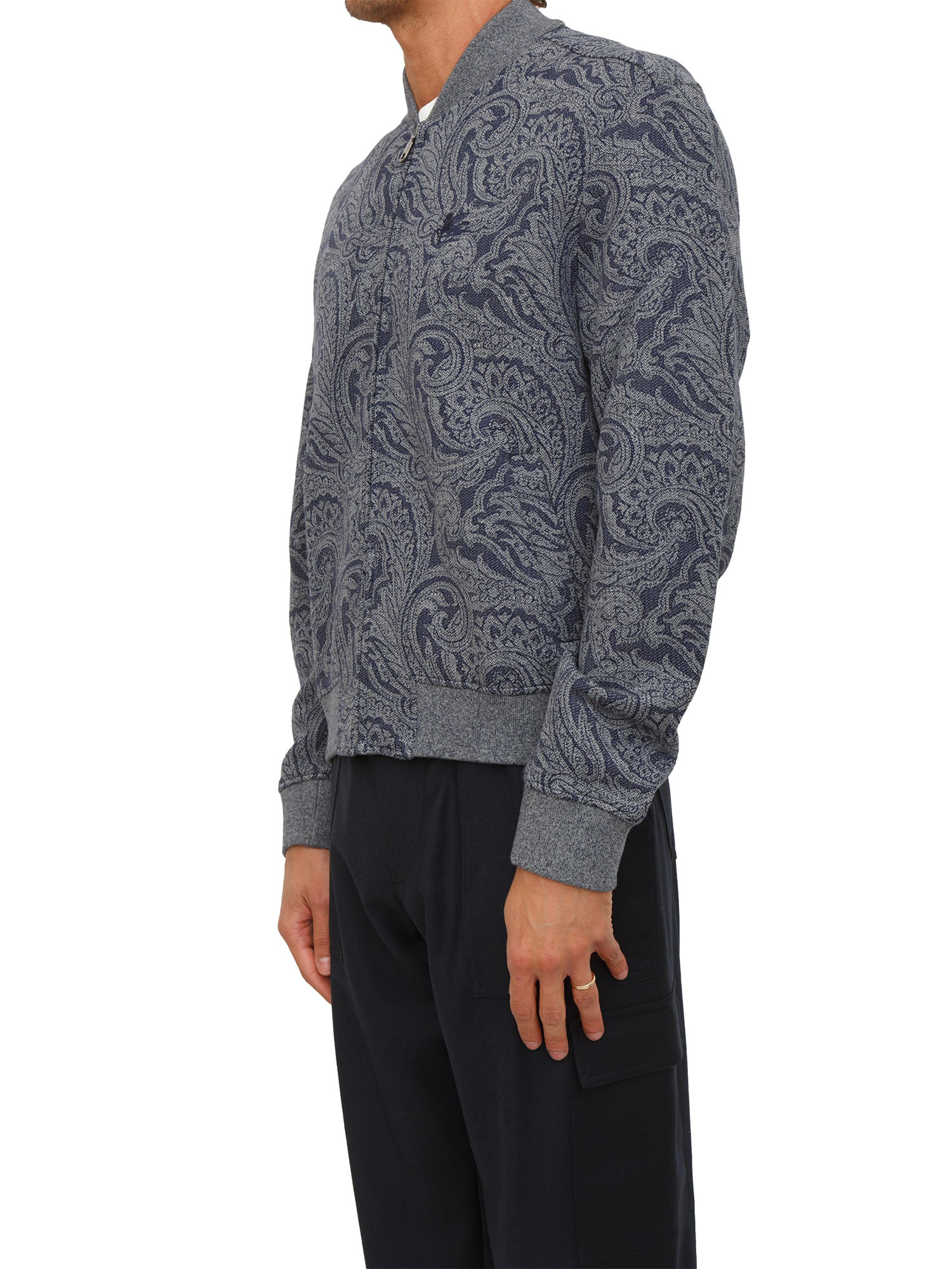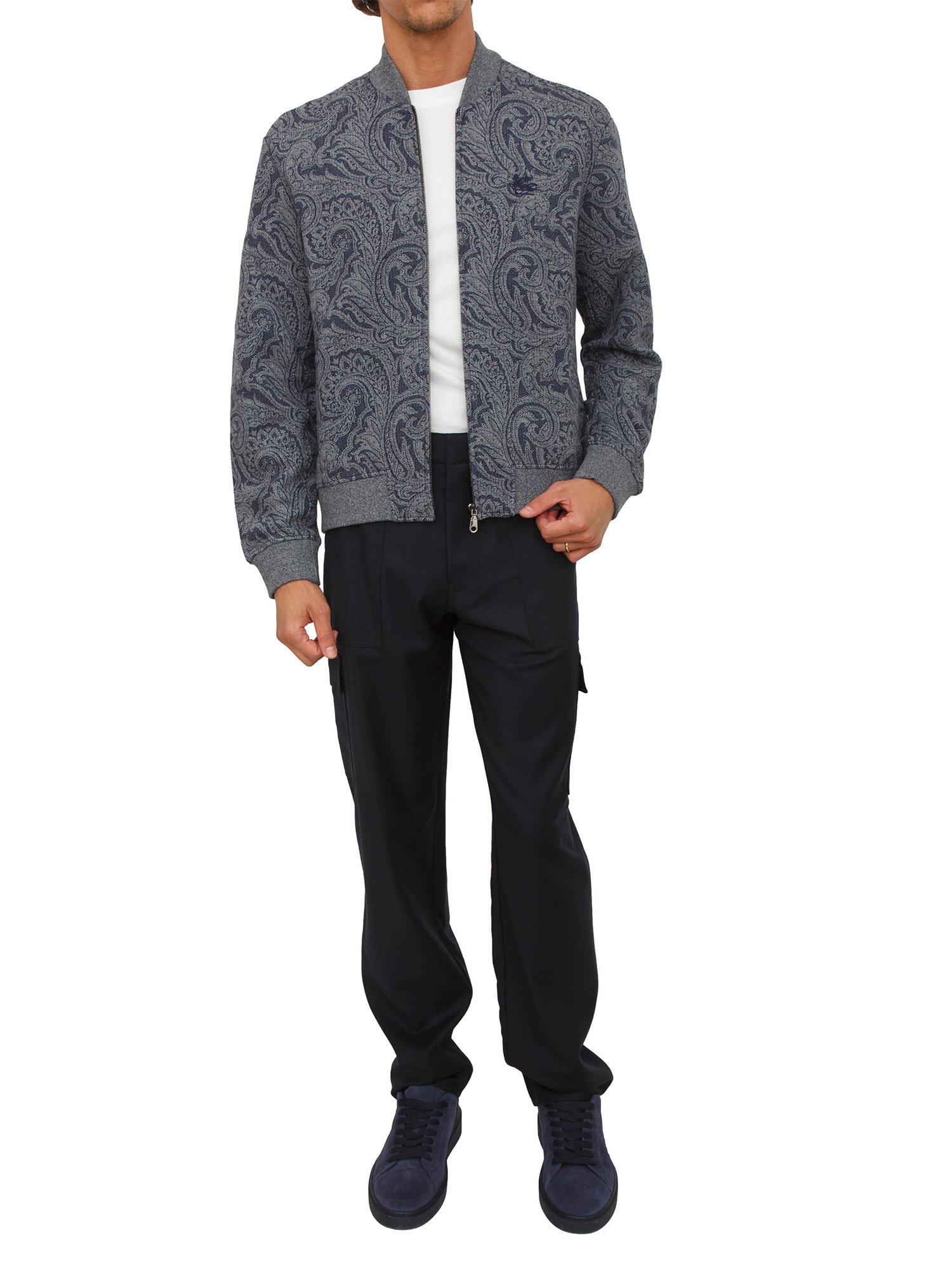 Felpa bomber Etro uomo in tessuto jacquard blu Paisley