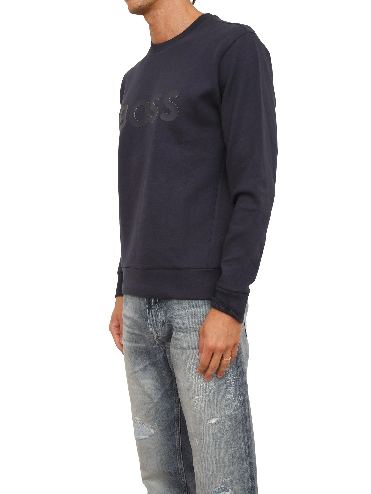 Brand: BOSSFelpa BOSS uomo versatile in cotone elasticizzato con vestibilità regular e girocollo. Questo capo presenta logo lettering applicato tono su tono davanti con polsini a costine. Il modello è alto 1.90m e indossa la taglia M.