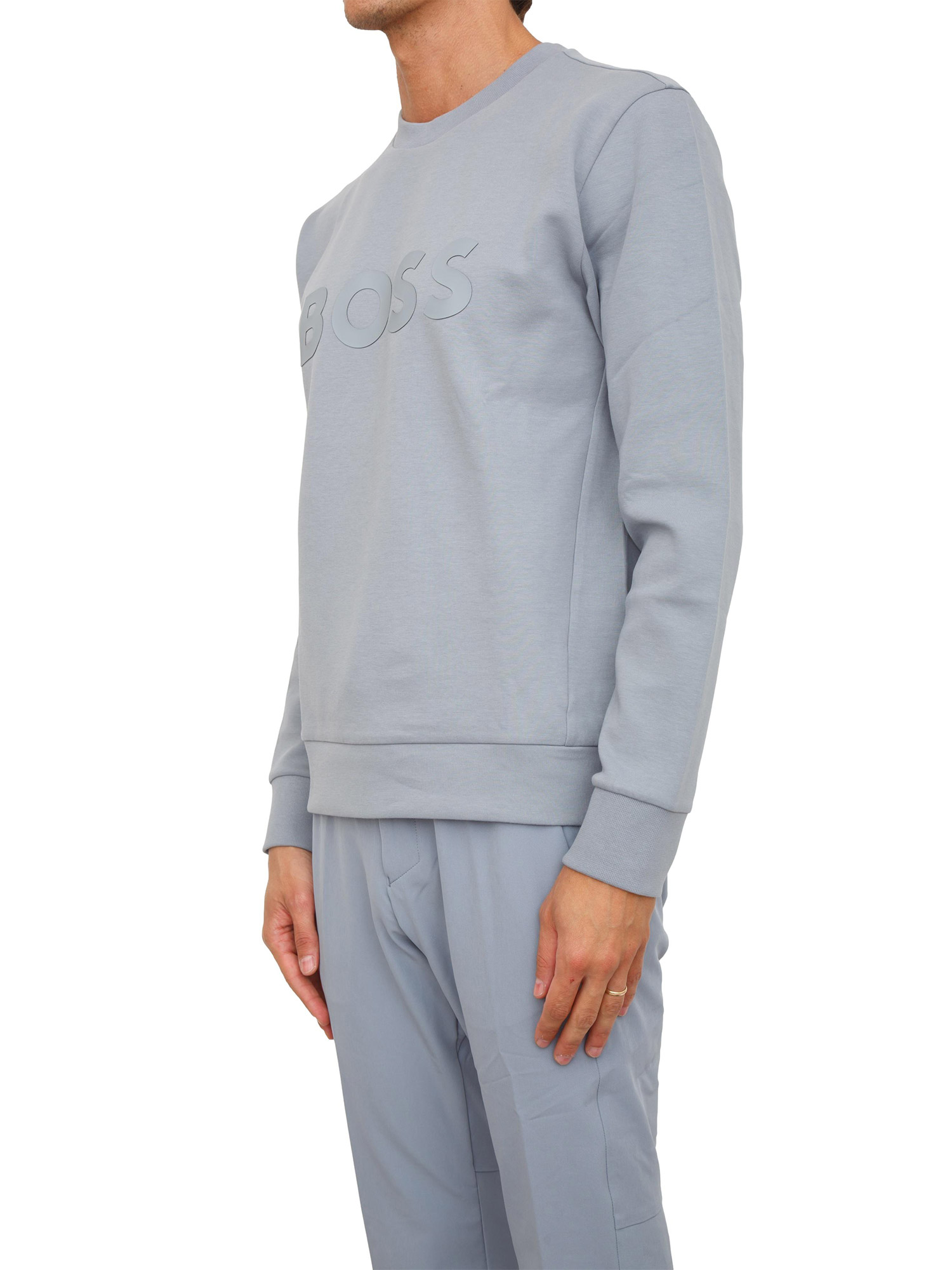 Brand: BOSSFelpa BOSS uomo versatile in cotone elasticizzato con vestibilità regular e girocollo. Questo capo presenta logo lettering applicato tono su tono davanti con polsini a costine. Il modello è alto 1.90m e indossa la taglia M.