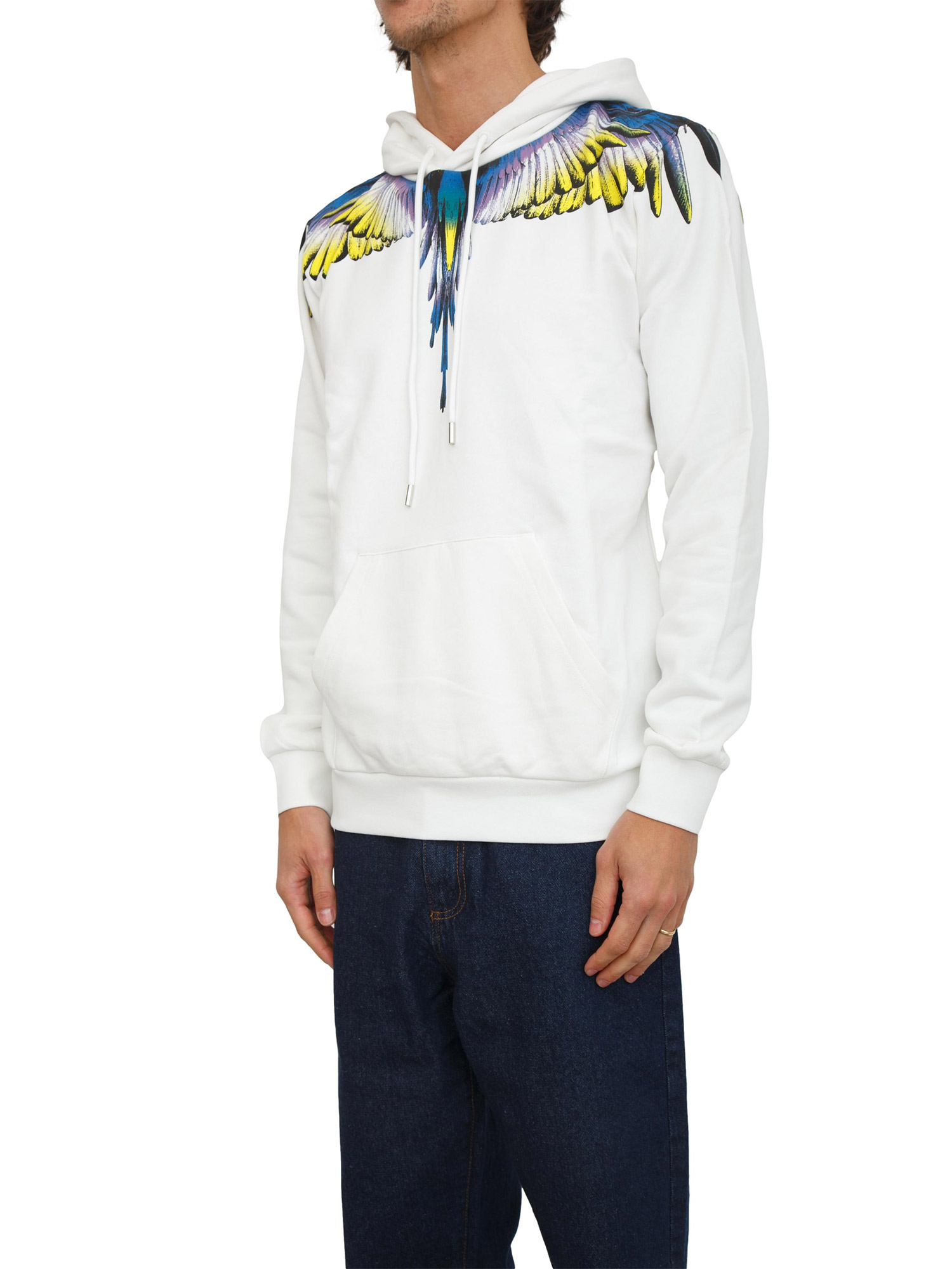 Felpa con cappuccio County of Milan bianca stampa aquila multicolor