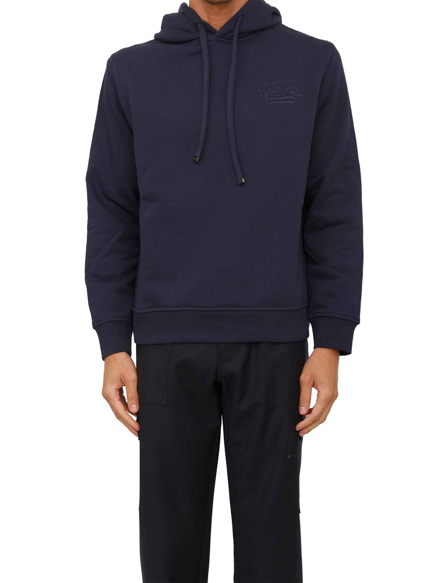 Felpa con cappuccio Etro uomo in misto cotone blu