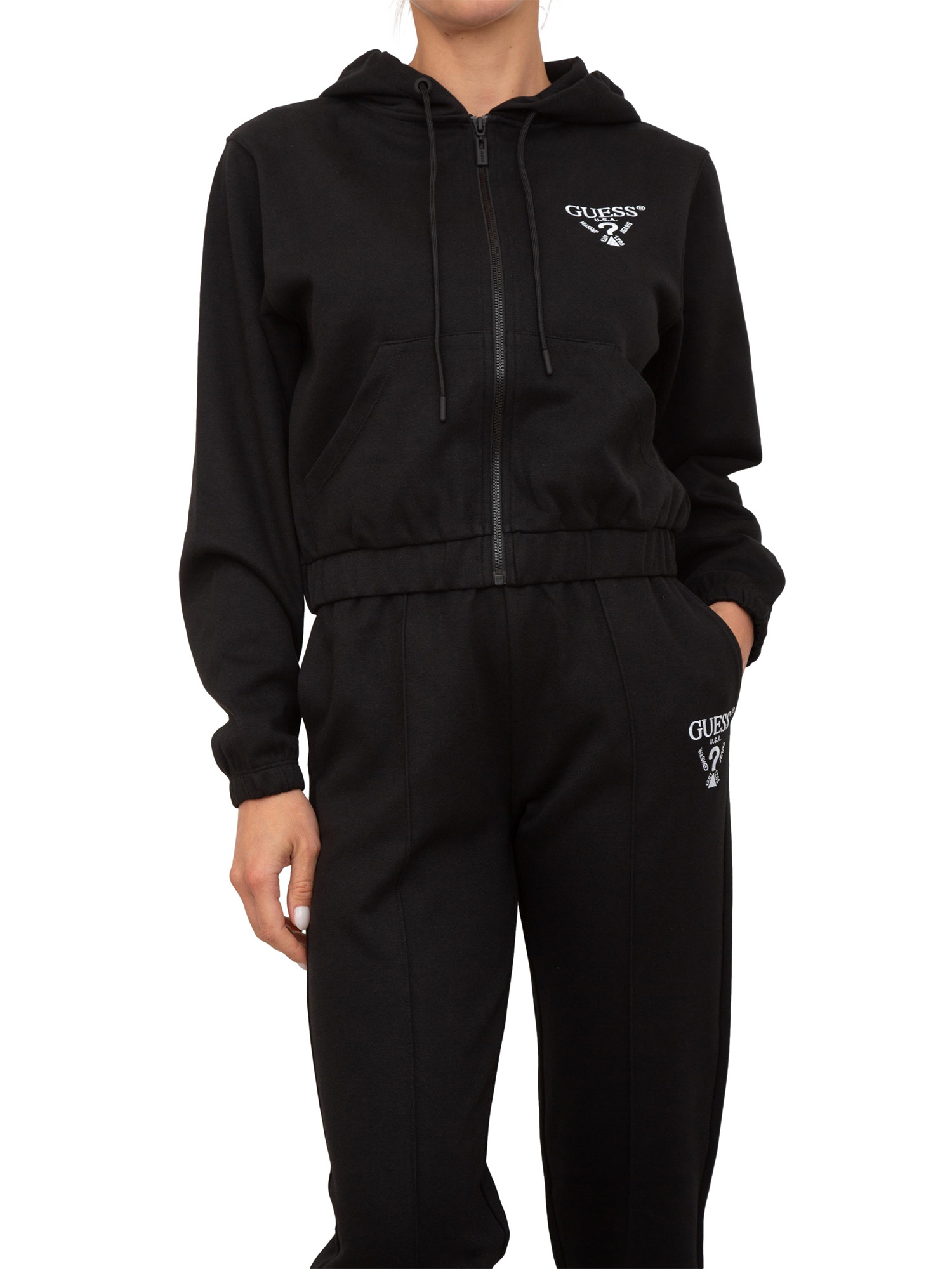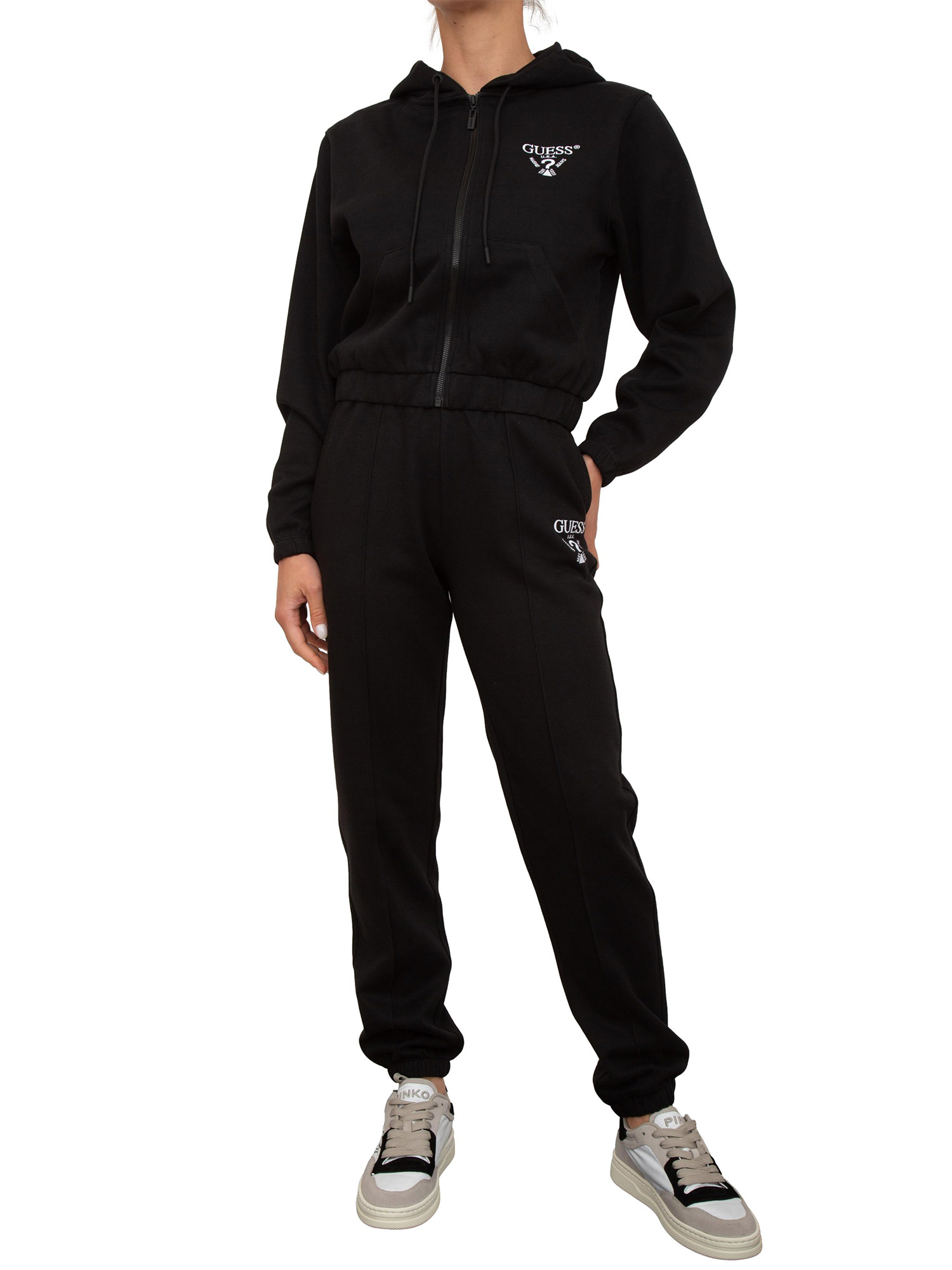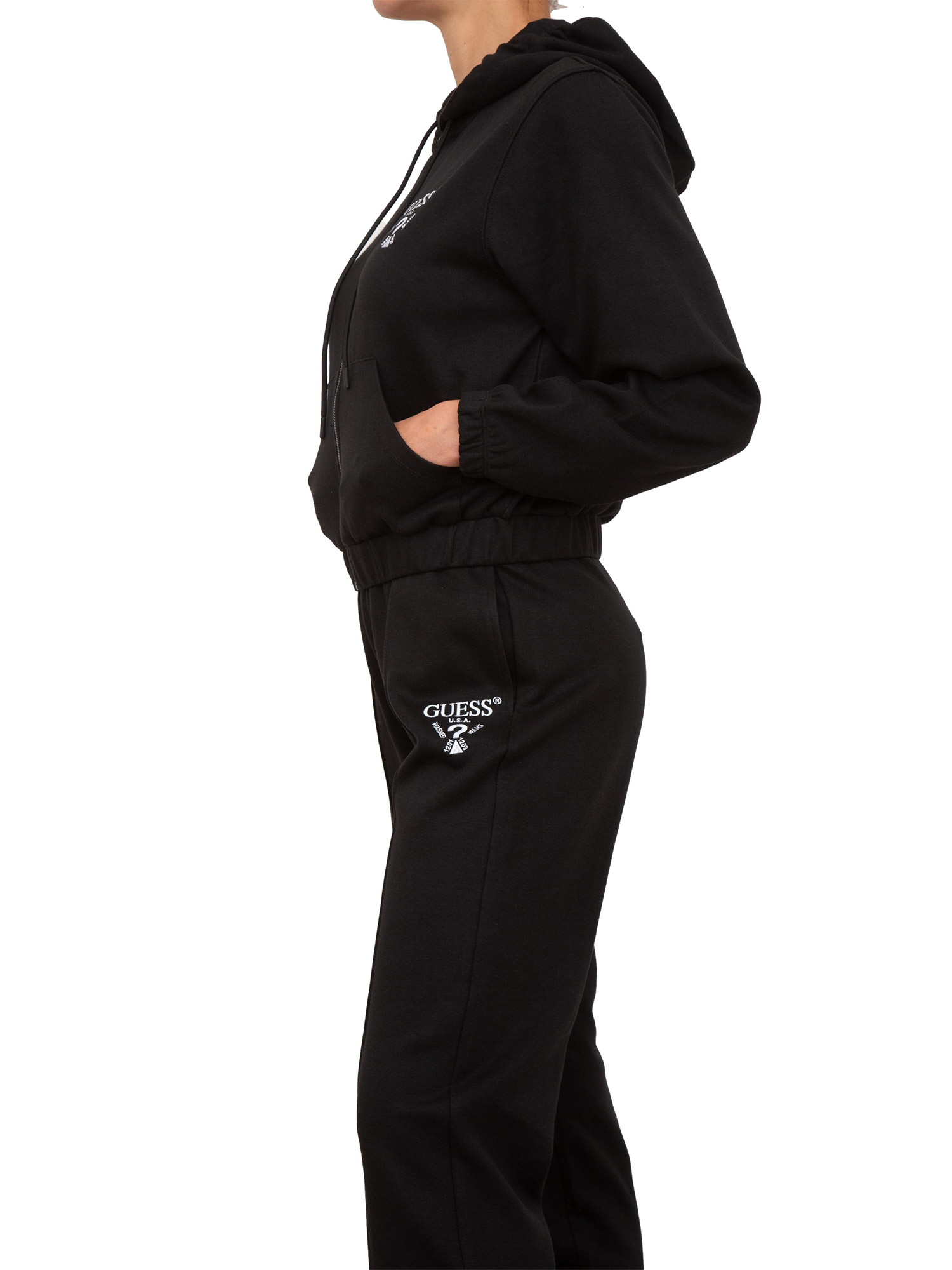 Felpa nera Guess Jeans donna con cappuccio e logo