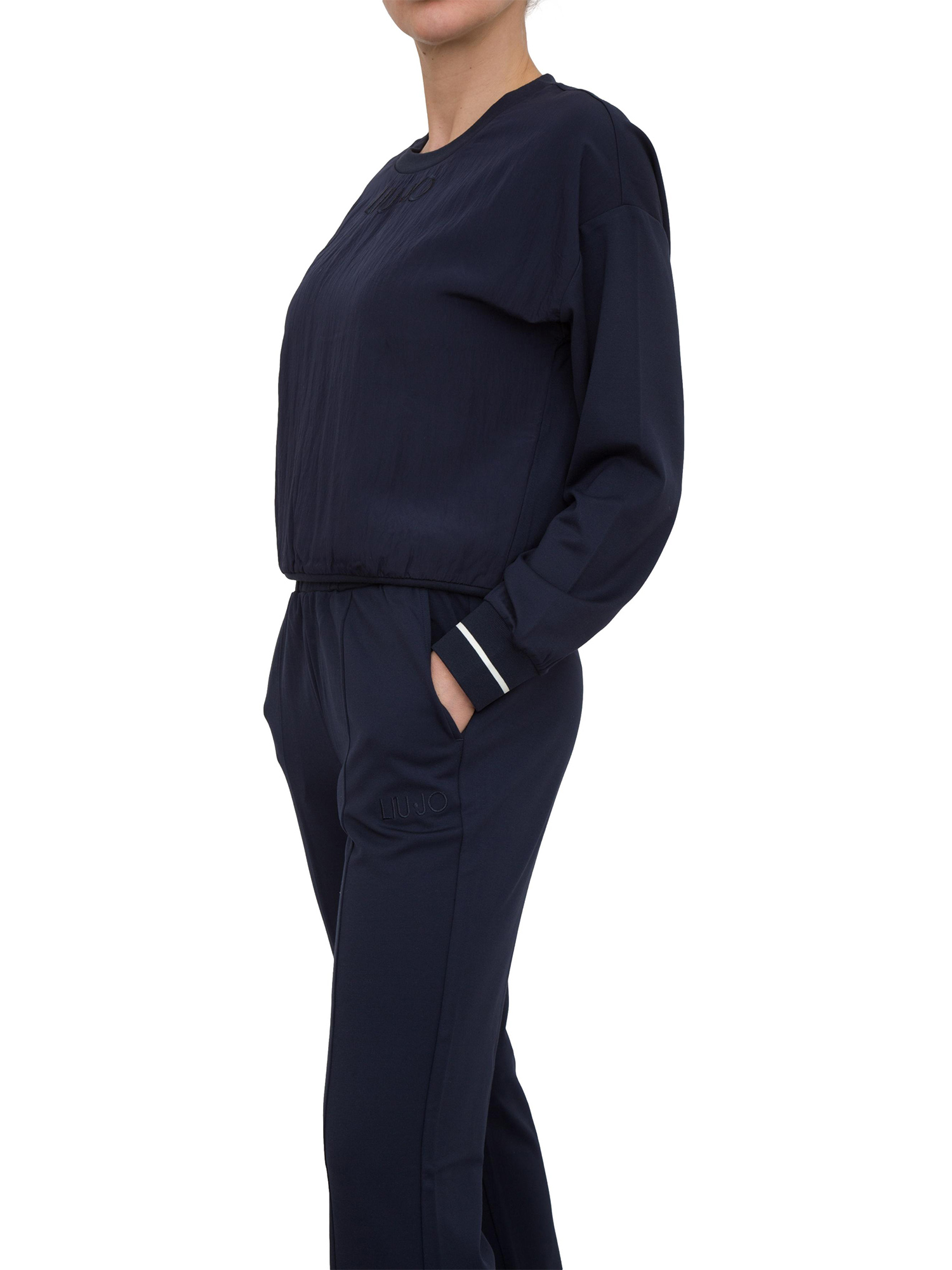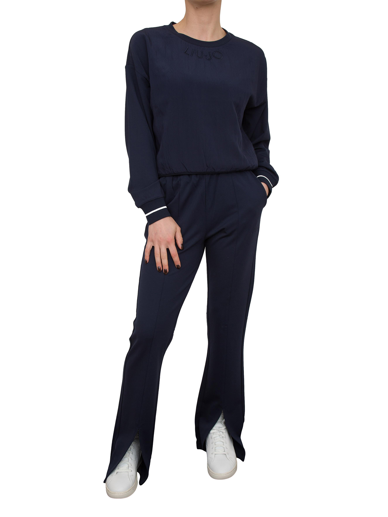 Felpa blu Liu Jo girocollo e polsini riga contrasto