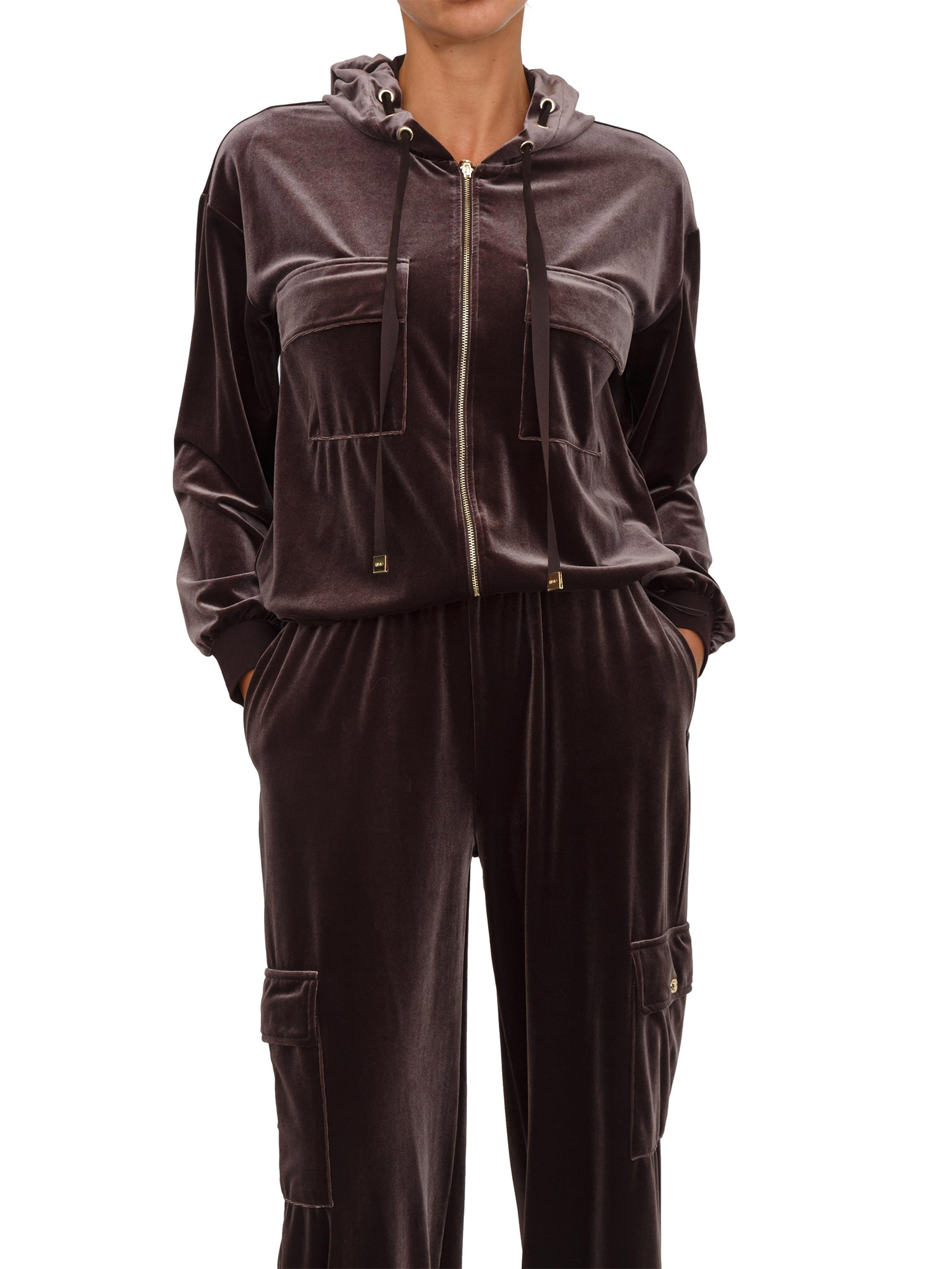 Felpa Liu Jo donna con cappuccio in ciniglia stretch marrone